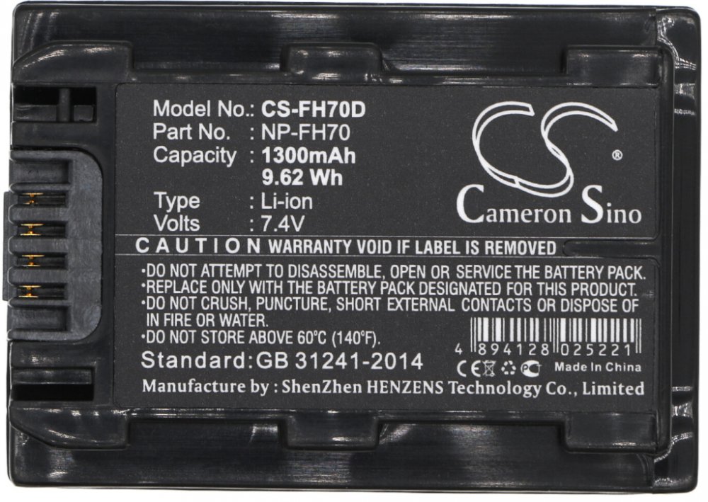 Typ Li-ion, barva tmavě šedá, kapacita 1300 mAh, váha netto 81.5 g, váha brutto 151.5 g, výkon 9.62 Wh, napětí 7.4 V. CR-HC51E, DCR-30, DCR-DVD103, DCR-DVD105, DCR-DVD105E, DCR-DVD106, DCR-DVD106E, DCR-DVD108, DCR-DVD109, DCR-DVD109E, DCR-DVD110E, DCR-DVD115E, DCR-DVD202E, DCR-DVD203, DCR-DVD203E, DCR-DVD205, DCR-DVD205E, DCR-DVD304E, DCR-DVD305, DCR-DVD305E, DCR-DVD306, DCR-DVD306E, DCR-DVD308, DCR-DVD308E, DCR-DVD310E, DCR-DVD403, DCR-DVD403E, DCR-DVD404E, DCR-DVD405, DCR-DVD405E, DCR-DVD406, DCR-DVD406E, DCR-DVD407E, DCR-DVD408, DCR-DVD410E, DCR-DVD505, DCR-DVD505E, DCR-DVD506, DCR-DVD506E, DCR-DVD508, DCR-DVD510E, DCR-DVD602, DCR-DVD602E, DCR-DVD605, DCR-DVD605E, DCR-DVD610, DCR-DVD653, DCR-DVD653E, DCR-DVD703, DCR-DVD703E, DCR-DVD705, DCR-DVD705E, DCR-DVD708, DCR-DVD708E, DCR-DVD710, DCR-DVD755, DCR-DVD755E, DCR-DVD803, DCR-DVD803E, DCR-DVD805, DCR-DVD805E, DCR-DVD808E, DCR-DVD810, DCR-DVD905, DCR-DVD905E, DCR-DVD908E, DCR-DVD910, DCR-DVD92, DCR-DVD92E, DCR-HC16, DCR-HC16E, DCR-HC17, DCR-HC17E, DCR-HC18, DCR-HC18E, DCR-HC19E, DCR-HC20, DCR-HC20E, DCR-HC21, DCR-HC21E, DCR-HC22E, DCR-HC23E, DCR-HC24E, DCR-HC26, DCR-HC26E, DCR-HC27, DCR-HC27E, DCR-HC28, DCR-HC28E, DCR-HC30, DCR-HC30E, DCR-HC30G, DCR-HC30L, DCR-HC30S, DCR-HC32, DCR-HC32E, DCR-HC33E, DCR-HC35E, DCR-HC36, DCR-HC36E, DCR-HC37, DCR-HC37E, DCR-HC38, DCR-HC38E, DCR-HC39E, DCR-HC40, DCR-HC40E, DCR-HC40S, DCR-HC40W, DCR-HC41, DCR-HC42, DCR-HC42E, DCR-HC43E, DCR-HC44E, DCR-HC45, DCR-HC45E, DCR-HC46, DCR-HC46E, DCR-HC47, DCR-HC47E, DCR-HC48, DCR-HC48E, DCR-HC51E, DCR-HC52, DCR-HC53E, DCR-HC62, DCR-HC62E, DCR-HC65, DCR-HC85, DCR-HC85E, DCR-HC94E, DCR-HC96, DCR-HC96E, DCR-SR100, DCR-SR100E, DCR-SR190E, DCR-SR200, DCR-SR200C, DCR-SR200E, DCR-SR210E, DCR-SR220, DCR-SR220D, DCR-SR290E, DCR-SR300, DCR-SR300C, DCR-SR300E, DCR-SR30E, DCR-SR32E, DCR-SR33E, DCR-SR35E, DCR-SR36E, DCR-SR40, DCR-SR40E, DCR-SR42, DCR-SR42A, DCR-SR42E, DCR-SR45, DCR-SR50, DCR-SR50E, DCR-SR52E, DCR-SR55E, DCR-SR60, DCR-SR60E, DCR-SR62, DCR-SR62E, DCR-SR65, DCR-SR70E, DCR-SR72E, DCR-SR75E, DCR-SR80, DCR-SR80E, DCR-SR82, DCR-SR82C, DCR-SR82E, DCR-SR85, DCR-SR90E, DR-SR10D, HDR-CX11E, HDR-CX12, HDR-CX12E, HDR-CX6, HDR-CX6EK, HDR-CX7, HDR-CX7K/E, HDR-HC3, HDR-HC3E, HDR-HC3HK1, HDR-HC5, HDR-HC5E, HDR-HC7, HDR-HC7E, HDR-HC9, HDR-HC9/E, HDR-HC9E, HDR-SR10, HDR-SR10/E, HDR-SR10D, HDR-SR10E, HDR-SR11, HDR-SR11/E, HDR-SR11E, HDR-SR12, HDR-SR12/E, HDR-SR12E, HDR-SR5, HDR-SR5C, HDR-SR5E, HDR-SR7, HDR-SR7E, HDR-SR8, HDR-SR8E, HDR-TG1, HDR-TG1/E, HDR-TG1E, HDR-UX10, HDR-UX19E, HDR-UX20, HDR-UX20/E, HDR-UX3E, HDR-UX5, HDR-UX5E, HDR-UX7, HDR-UX7E, HDR-UX9E. NP-FH70