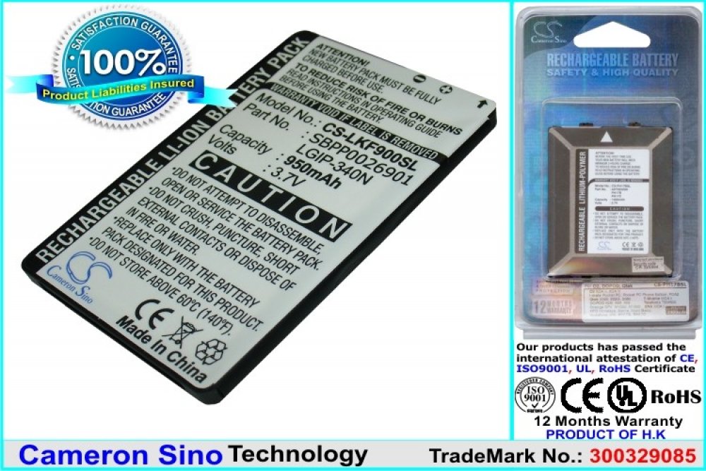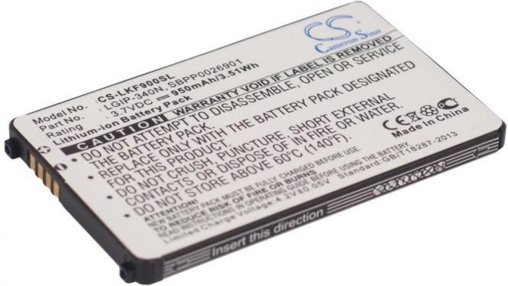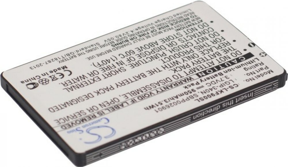 Typ Li-ion, váha netto 20.6 g, váha brutto 46 g, výkon 3.52 Wh, napětí 3.7 V, kapacita 950 mAh, barva černá. 101, AX265 BANTER, AX840, Banter AX265, CM-101, GD300S, GR500, GR500 BANTER, GR700, GT350, GT350F, GT550, GT550 Encore, GW370, GW520, GW525, KF900, KF900 PRADA II, KM555, KM555E, KS500, KS660, LX265, LX265 RUMOR 2, Neon II, Octane VN530, Rumor 2, Rumor2 LX265, Tritan AX840, UN250, UX265, UX840, VM-101, VN250, VN530, VU PLUS GR700, XENON, Xenon GR500. LGIP-340N, SBPP0026901, SPPP0018575