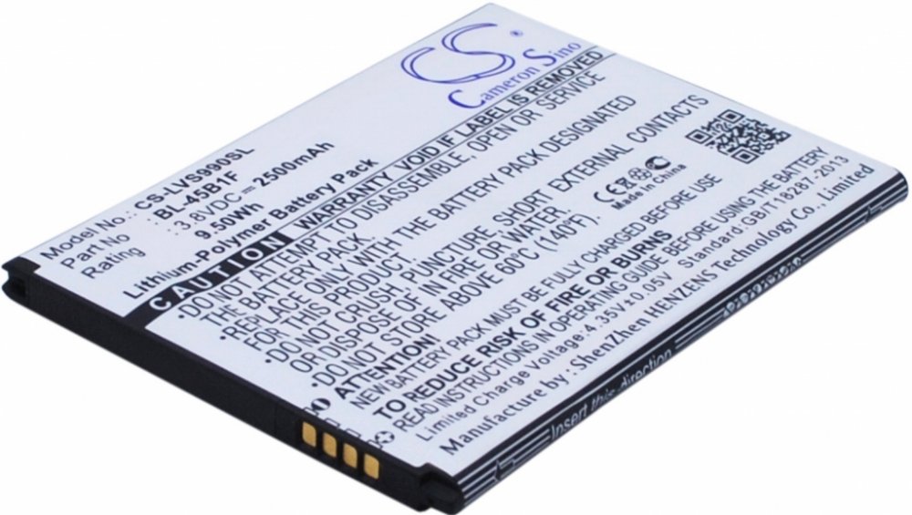 Výkon 9.5 Wh, barva černá, váha netto 41 g, váha brutto 76 g, typ Li-Polymer, kapacita 2500 mAh, napětí 3.8 V. F600, F720S, G Stylo 2 Plus, H900, H901, H960, H960YK, H961N, H962, H968, H968 Dual SIM, K520, K530, K530DY, K535D, K535T, K535Y, K540, K550, K557, L81AL, L82VL, LS775, MS550, MS550BK, PH2, Stylo 2, Stylo 2 LTE, Stylo 2 Plus, Stylo 2 Plus 4G LTE, Stylo 2 V, Stylo 2 V XLTE, Stylus 2 4G LTE, Stylus 2 Plus, V10, V10 LTE, VS835, VS990. BL-45B1F, EAC63118201, EAC63158401 AAC