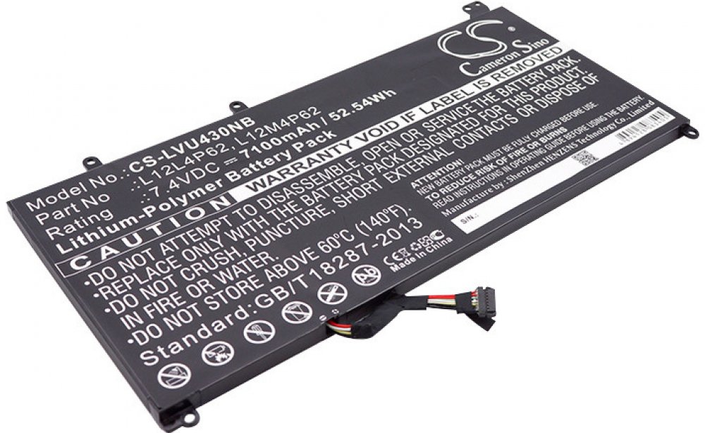 Jedná se o plnohodnotnou a kvalitní náhradu vaší původní baterie. Baterii můžete dobíjet originální nebo kompatibilní nabíječkou určenou pro váš přístroj. Baterie je zabalena v pěkném, kvalitním plastovém obalu.Rozšířená záruka na ztrátu kapacity z 6 na 12 měsíců Výrobce této baterie společnost Cameron Sino si stojí za vynikající kvalitou svých výrobků. Jako důkaz kvality dává spotřebitelům záruku na ztrátu kapacity u této baterie 12 měsíců.Vlastnostibaterie nemá paměťový efektje chráněna proti přebití a přepólováníživotnost až 1200 nabíjecích cyklůNávod Uživatelský manuál naleznete na této stránce.Parametrynapětí: 7.4 Vtyp: Li-Polymerkapacita: 7100 mAhenergie: 52.54 Whhmotnost: 280 gKompatibilitaLenovo:Ideapad U330tIdeapad U430Ideapad U430pIdeapad U430tIdeapad U430 Touch-59371574Ideapad U530U430 TouchBaterie je ekvivalentem těchto originálních bateriíL12L4P62L12M4P62