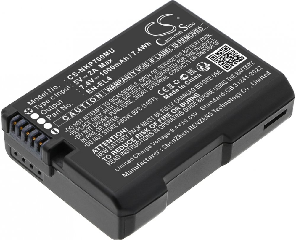 Váha brutto 71 g, váha netto 46 g, napětí 7.4 V, výkon 7.4 Wh, kapacita 1000 mAh, barva černá, typ Li-ion. Coolpix P7000, Coolpix P7100, Coolpix P7700, Coolpix P7800, D2H, D2Hs, D2X, D2Xs, D3, D3100, D3100 DSLR, D3200, D3200 DSLR, D3300, D3S, D3X, D5100, D5100 DSLR, D5200, D5300, D5500, D5600, DF, DSLR D3100, DSLR D3200, DSLR D3300, DSLR D5100, DSLR D5200, DSLR D5300, DSLR D5600, F6. EN-EL14, EN-E...
