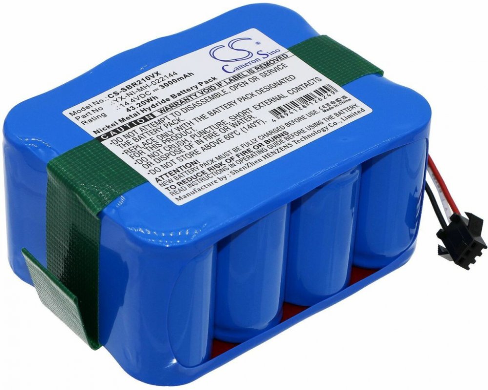 Kapacita 3000 mAh, výkon 43.2 Wh, typ Ni-MH, napětí 14.4 V, barva zelená, váha netto 653 g, váha brutto 723 g. 017144-TN, 510B, 710, 770, bObi Classic, BObi Pet Robotic Vacuum Cleaner, BQBS1000, BQBS1003, Hovo 510, Hovo 510 Plus, IQX-510, KV8, S350, SVC9031BK, XR210, XR210, XR510, Z520. NS3000D03X3, YX-NI-022144-COR, YX-NI-MH-017144-COR, YX-NI-MH-022144