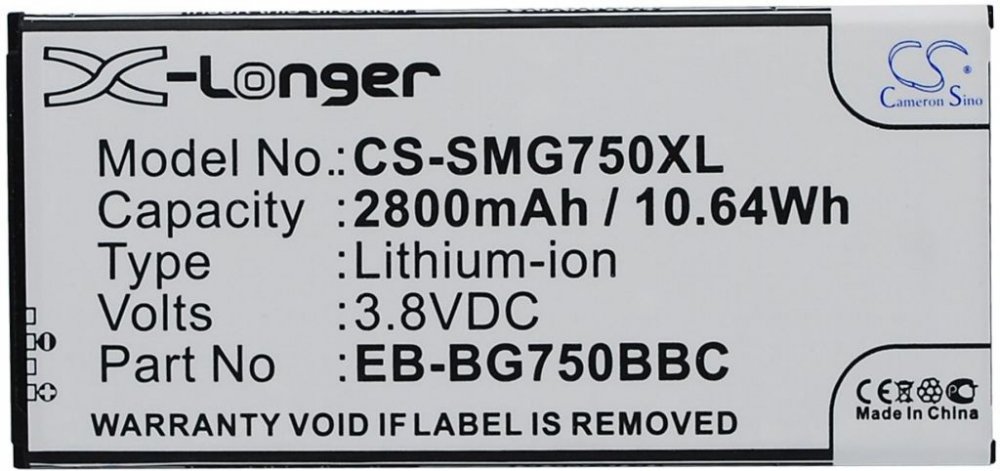 Napětí 3.8 V, kapacita 2800 mAh, typ Li-ion, váha brutto 82 g, výkon 10.64 Wh, váha netto 47 g, barva černá. Galaxy Mega 2, Galaxy Mega 2 Duos, Galaxy Mega 2 LTE, SM-G750, SM-G7508, SM-G7508Q, SM-G7509, SM-G7509W, SM-G750A, SM-G750F, Vasta. EB-BG750BBC, EB-BG750BBE