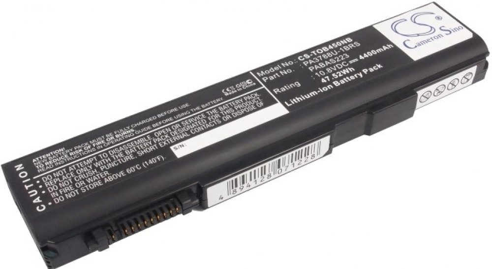Barva černá, typ Li-ion, váha netto 312.3 g, napětí 10.8 V, kapacita 4400 mAh, váha brutto 462.3 g, výkon 47.52 Wh. Dynabook Satellite B450/B, Dynabook Satellite B451, Dynabook Satellite B451/D, Dynabook Satellite B452/F, Dynabook Satellite B550/B, Dynabook Satellite B551/E, Dynabook Satellite B552/F, Dynabook Satellite B650/B, Dynabook Satellite B651, Dynabook Satellite K40, Dynabook Satellite K4...