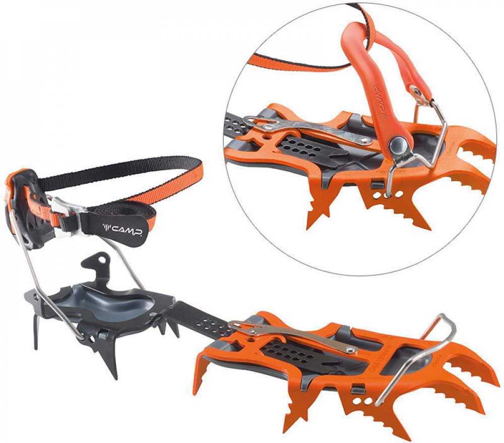 - Integrované hroty jsou optimalizovány pro lezení ve strmém až kolmém ledu i v tvrdém sněhu