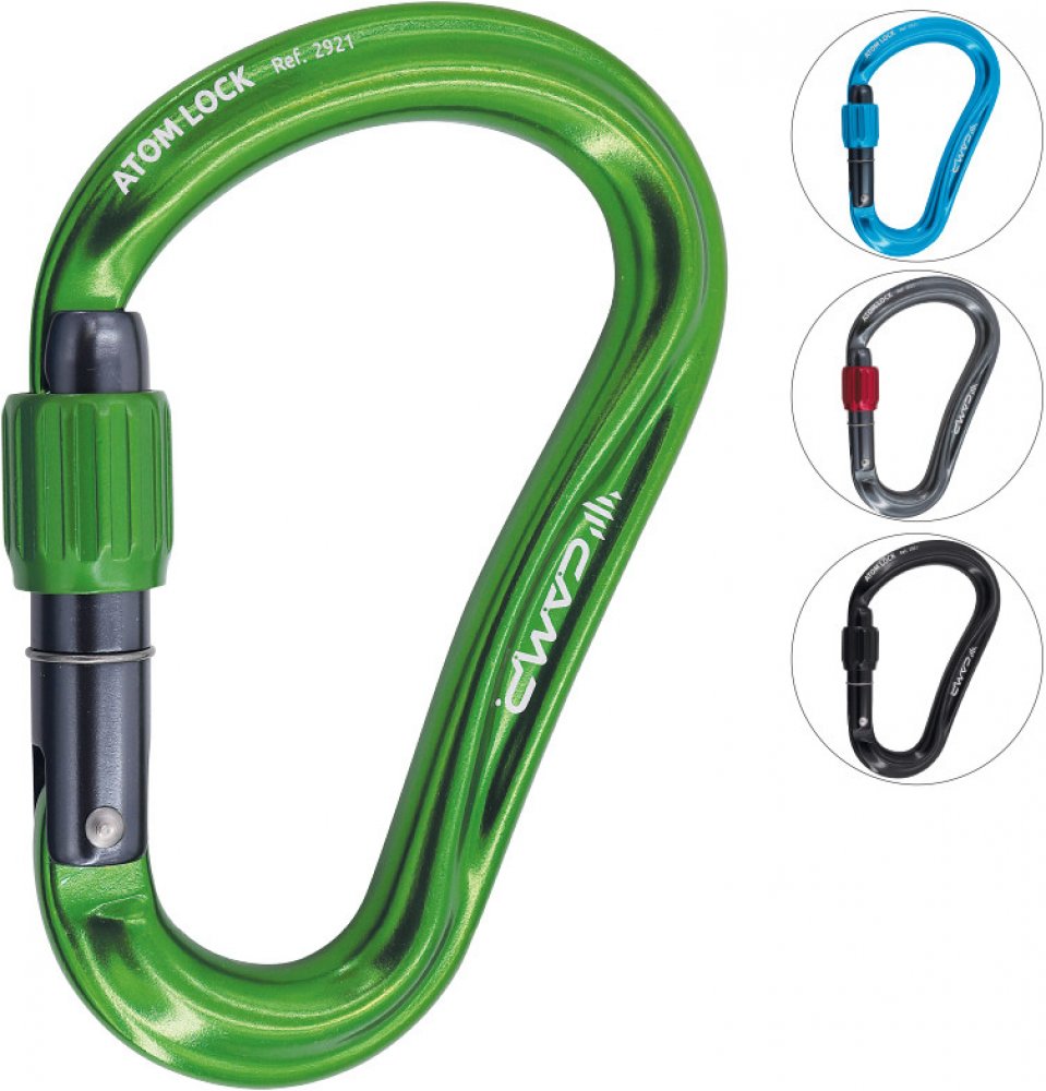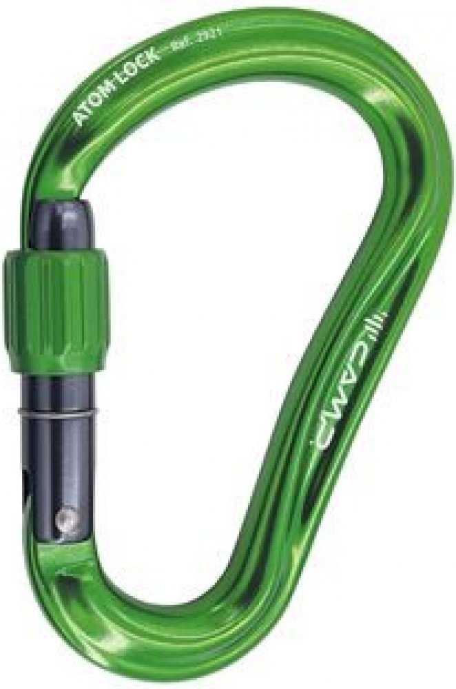 Camp Atom Lock je velká HMS karabina určená k jištění a slaňování. Atom Lock je opatřena patentovanou úpravou SphereLock, která přesným výbrusem nosu a zámku karabiny zvyšuje pevnost při zatížení. Díky velké světlosti karabiny je práce s lanem snadnější. Nově upravená šroubovací pojistka zámku zaručuje optimální skluz závitu pro tu nejjednodušší manipulaci jednou rukou. Pro zvýšení bezpečnosti je zámek karabiny opatřen laserovým výbrusem, který značí, je-li pojistka zámku dostatečně zašroubována.