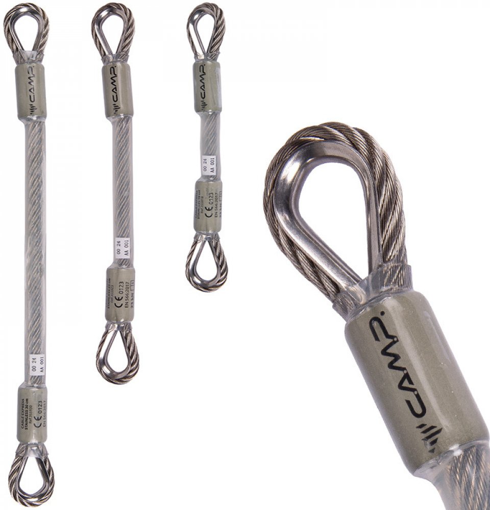 Vysoce odolná expresková smyce z ocelového 6mm lanka. Oka pro připojovací karabiny jsou na vnitřní straně ošetřena ocelovou vložkou, která zamezuje otěru karabiny o lanko. Středová část včetně zakončení je zapouzdřena v průhledné plastové chráničce, které jednak chrání lanko před třepením a okolním vlivům a zároveň usnadňuje případnou kontrolu stavu ocelového jádra. Ocelové perma-expresky se používají na lezeckých stěnách, venkovních sportovních cestách či rozdělaných projektech - jednoduše tam, kde se expreska z jistícího bodu nevycvakává. Obrovskou výhodou je kromě několikanásobně vyšší životnosti oproti klasickým nylonovým expreskovým smycím také složitější případné odcizení díky šroubovací mailonce (CAMP Oval Quick Link; 10mm), která se zde používá. Jako druhá karabina pro zajištění lana se nejčastěji používá CAMP Gym Safe se zámkem proti přetočení.