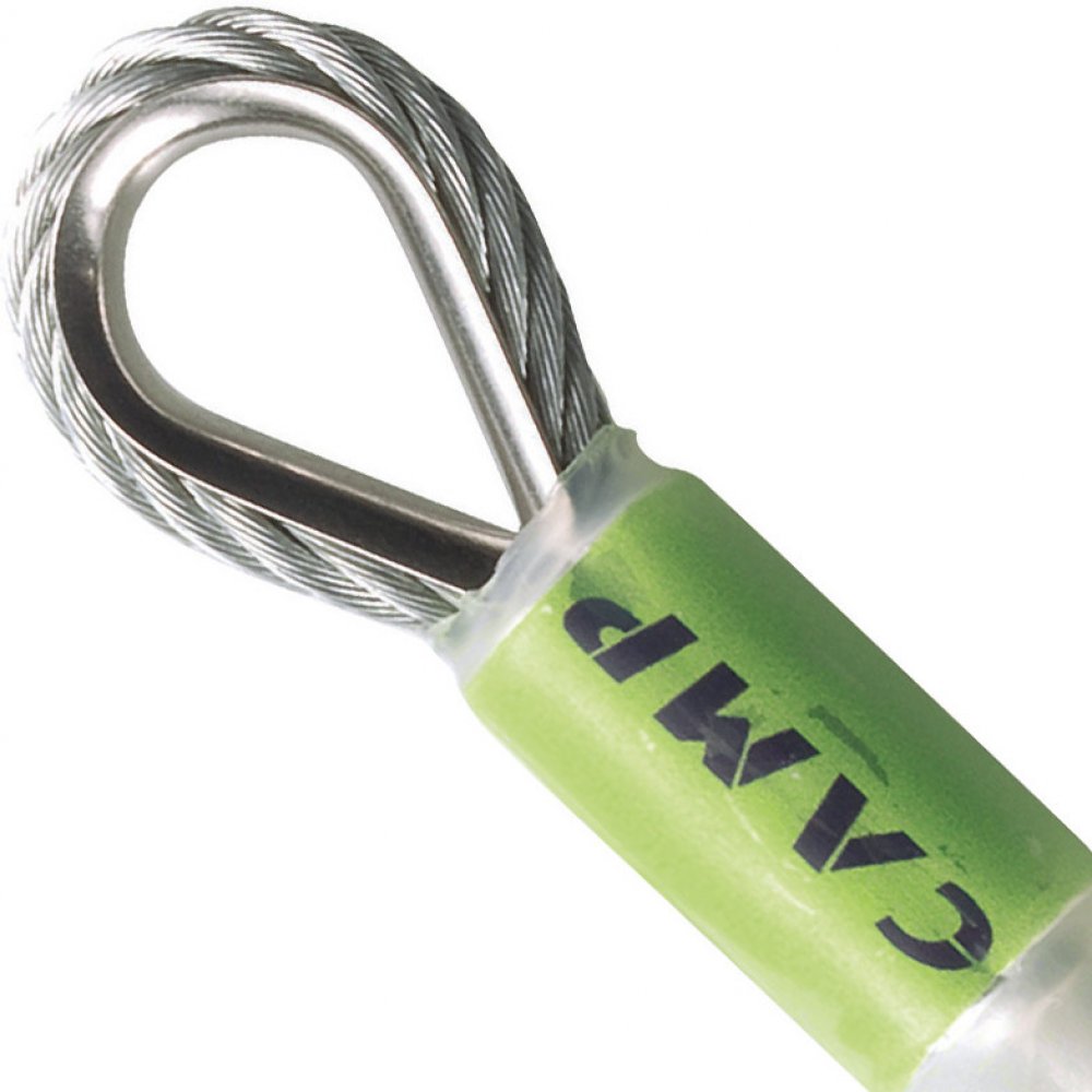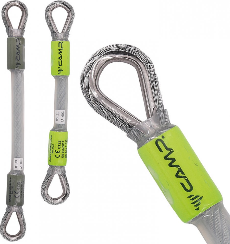 Vysoce odolná expresková smyce z ocelového 6mm lanka. Oka pro připojovací karabiny jsou na vnitřní straně ošetřena ocelovou vložkou, která zamezuje otěru karabiny o lanko. Středová část včetně zakončení je zapouzdřena v průhledné plastové chráničce, které jednak chrání lanko před třepením a okolním vlivům a zároveň usnadňuje případnou kontrolu stavu ocelového jádra. Ocelové perma-expresky se používají na lezeckých stěnách, venkovních sportovních cestách či rozdělaných projektech - jednoduše tam, kde se expreska z jistícího bodu nevycvakává. Obrovskou výhodou je kromě několikanásobně vyšší životnosti oproti klasickým nylonovým expreskovým smycím také složitější případné odcizení díky šroubovací mailonce (CAMP Oval Quick Link; 10mm), která se zde používá. Jako druhá karabina pro zajištění lana se nejčastěji používá CAMP Gym Safe se zámkem proti přetočení.