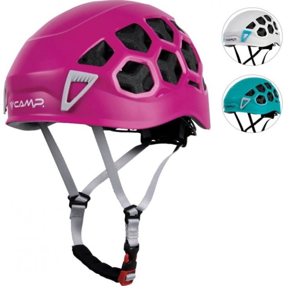 Dámská verze horolezecké přilby C.A.M.P. Ikon se speciální úpravou prostoru kolem aretačního kolečka pro delší vlasy. Přilba je vhodná pro skalní lezení, lezení v ledu i zajištěné cesty VIA FERRATA. C.A.M.P. Ikon využívá hybridní konstrukci kombinující výhody přileb s tvrdou skořepinou s pohodlím a ochranou konstrukce In-mold. Vnější ochranná ABS skořepina prošla finálním tvarováním, které přináší mnohem vyšší pevnost a odolnost v místech překryvu s celkem 18 otvory pro ventilaci. Ty jsou velmi chytře rozmístěny a velikostně navrženy pro maximální prodyšnost bez kompromisu, který by mohl vést ke snížení ochrany. Mezi další důležité doplňky přilby C.A.M.P. Ikon patří vnitřní měkké polstrování, zadní stahovací kolečko a klipy pro připevnění čelovky bez nutnosti sundání přilby. Veškeré části přilby jsou demontovatelné pro snadnou údržbu nebo výměnu.
