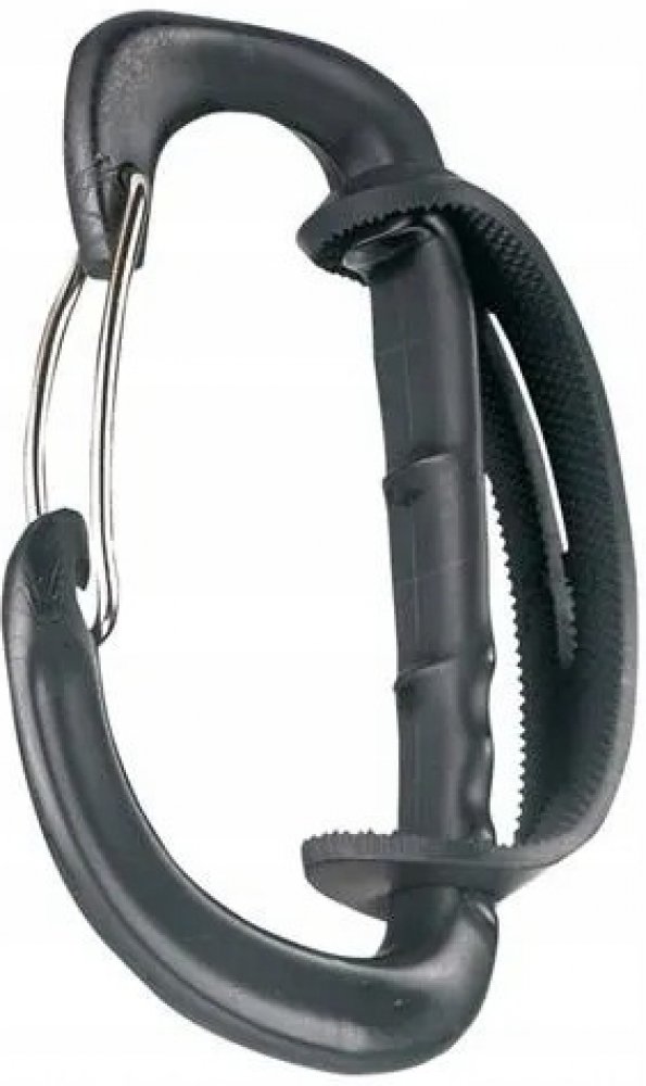 Pomocná drátová karabina pro pevné připojení k popruhu sedacího postroje pomocí Torxů.