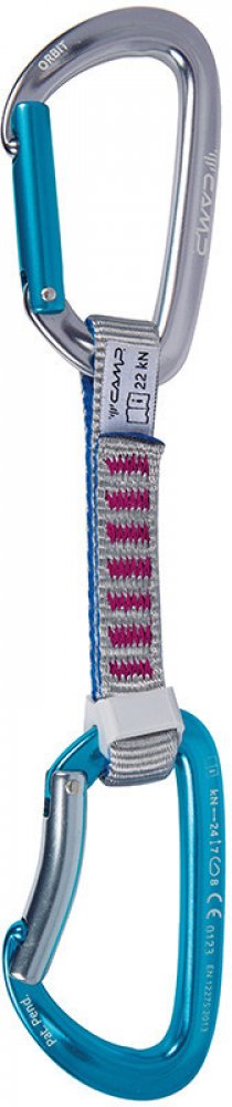 CAMP Orbit Express s 16 mm nylonovou smyčkou v délce 12 cm je v kategorii expresek CAMP jedním z bestsellerů. Orbit Express je složena ze dvou plných karabin CAMP Orbit, kde spodní karabina má prohnutý zámek pro snadnější založení lana. Karabiny Orbit se vyznačují vysokou pevností v podélném směru a jsou navíc vylepšeny o patentovanou úpravu SphereLock, která přesným výbrusem nosu a zámku karabiny...