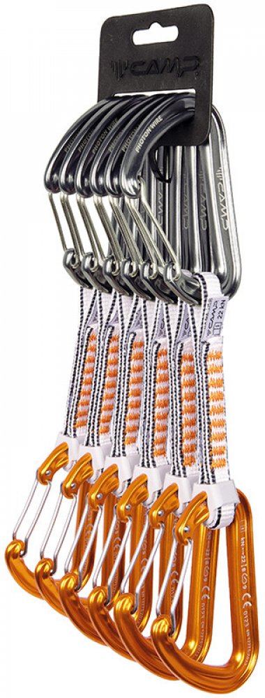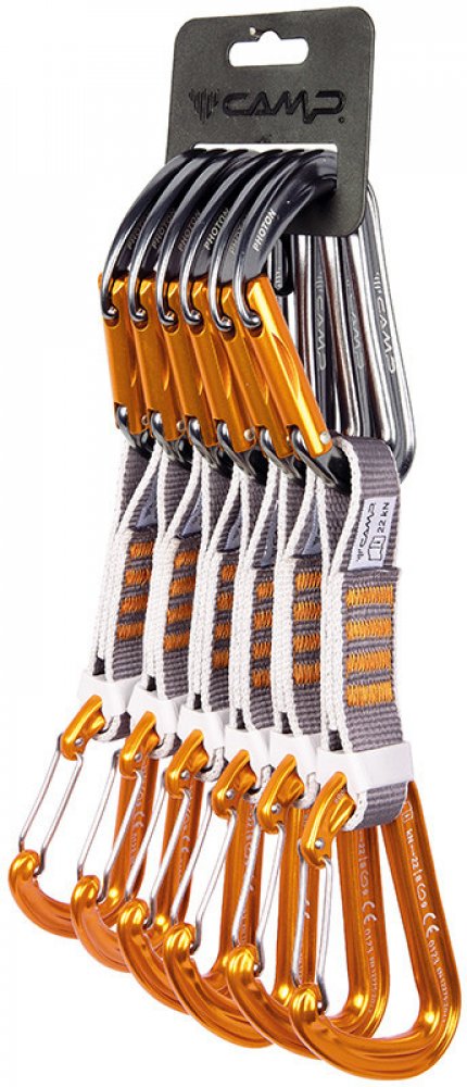 Sada 6 ks mixových expresek s ultralehkými keylockovými karabinami CAMP Photon Straight Gate a drátovými karabinami CAMP Photon Wire. Karabiny jsou spojeny širokou polyesterovou smycí v délce 12 cm. Drátová karabina CAMP Photon Wire je nejlehčí karabinou v plné velikosti, kterou CAMP nabízí. Karabiny CAMP Photon Straight Gate jsou vylepšeny o patentovanou úpravu SphereLock, která přesným výbrusem nosu a zámku karabiny ještě zvyšuje pevnost při zatížení. Důležitou součástí expresky je doplněk Karstop Evo, který zamezuje protáčení karabiny, kterou prochází lano.
