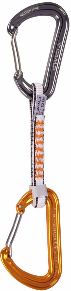 Profesionální expreska s ultralehkými drátovými karabinami CAMP Photon Wire. Karabiny jsou spojeny 11 mm Dyneema® smycí v délce 12 cm. Drátová karabina CAMP Photon Wire je nejlehčí karabinou v plné velikosti, kterou CAMP nabízí. Důležitou součástí expresky je doplněk Karstop Evo, který zamezuje protáčení karabiny, kterou prochází lano.