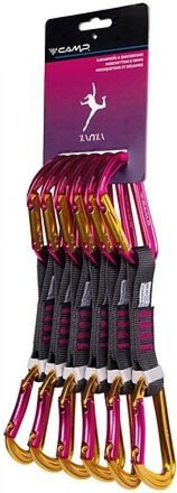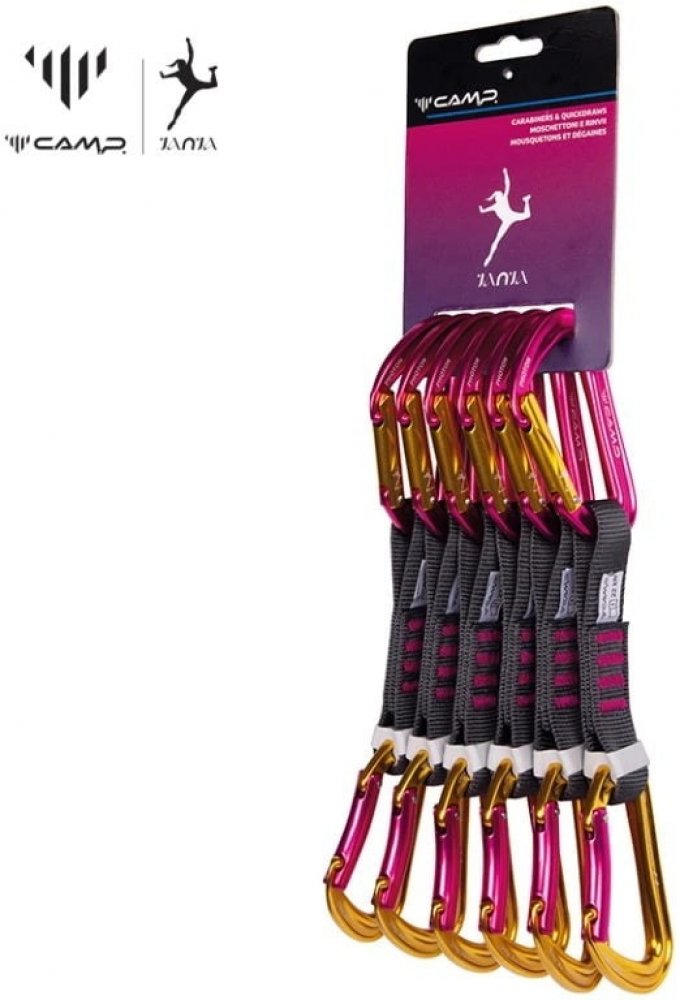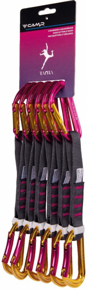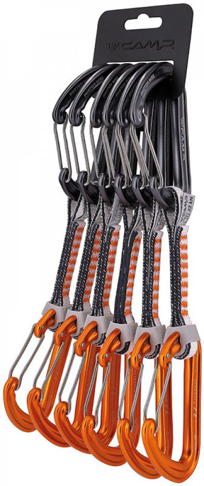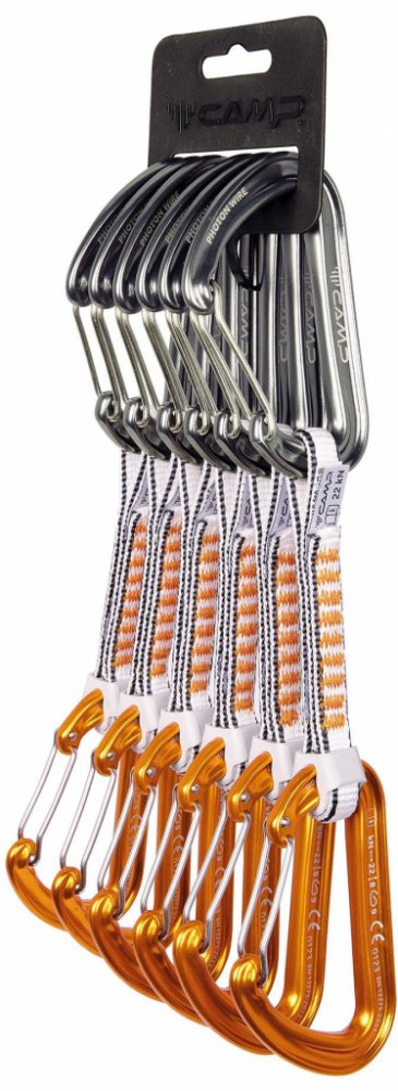Sada 6 ks profesionálních expresek s ultralehkými drátovými karabinami CAMP Photon Wire. Karabiny jsou spojeny 11 mm Dyneema® smycí v délce 12 cm. Drátová karabina CAMP Photon Wire je nejlehčí karabinou v plné velikosti, kterou CAMP nabízí. Důležitou součástí expresky je doplněk Karstop Evo, který zamezuje protáčení karabiny, kterou prochází lano.