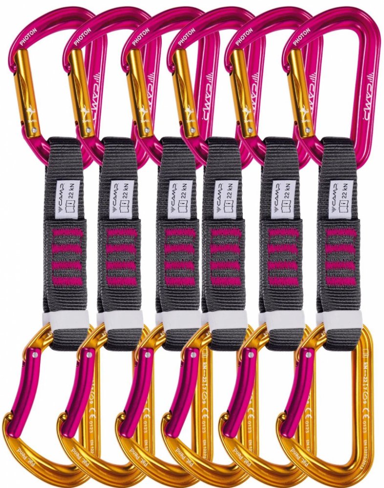 Sada 6 ks profesionálních expresek s ultralehkými drátovými karabinami CAMP Photon Wire a spojovací 11 mm smyčkou Dyneema v délce 12 cm.