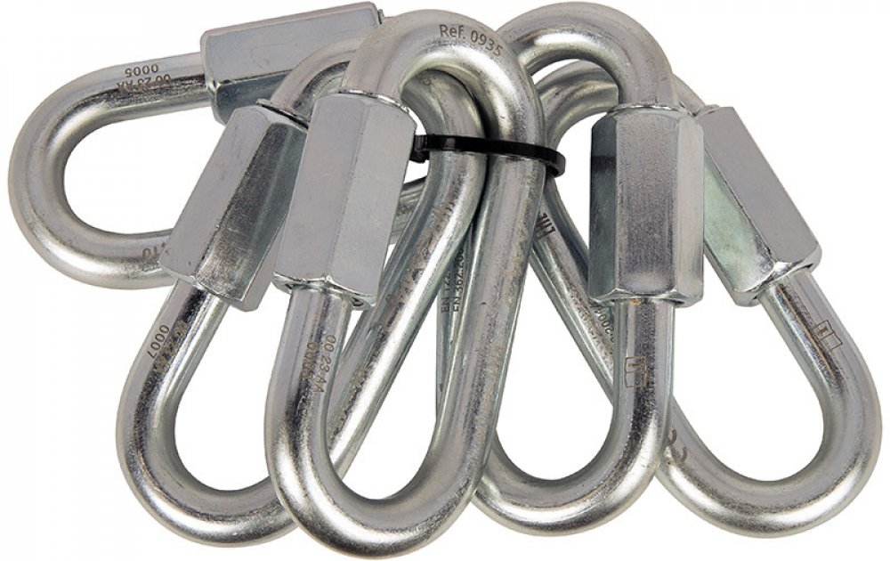 Sada 5 ks velmi odolných mailon oválného tvaru se šroubovacím zámkem. Mailony jsou z pozinkované karbonové oceli a jsou uzpůsobené pro kotvení a práci v průmyslu.