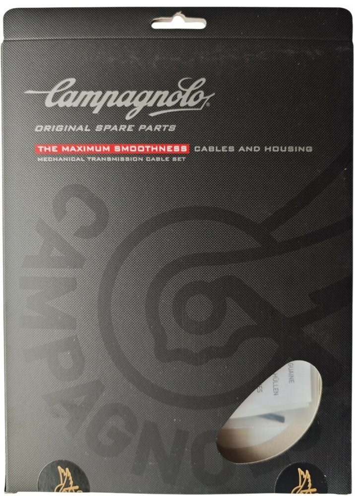 UNIVERSÁLNÍ SADA řadících, brzdových lanek a bowdenů, koncovek určená pro VEŠKERÉ řadící systémy CAMPAGNOLO. barva: ČERNÁBALENÍ OBSAHUJE:• 2ks řadícího bowdenu, délka 680 mm, průměr 4,5 mm • 1ks řadícího bowdenu, délka 330 mm, průměr 4,5 mm• 1ks řadícího lanka, délka 2000 mm, průměr 1,2 mm• 1ks řadícího lanka, délka 1600 mm, průměr 1,2 mm • 1ks brzdového bowdenu, délka 580 mm, průměr 5 mm• 1ks brzdového bowdenu, délka 1250 mm, průměr 5 mm • 1ks brzdového lanka, délka 1600 mm, průměr 1,6 mm• 1ks brzdového lanka, délka 800 mm, průměr 1,6 mm • dorazy bowdenů (viz. obrázek)