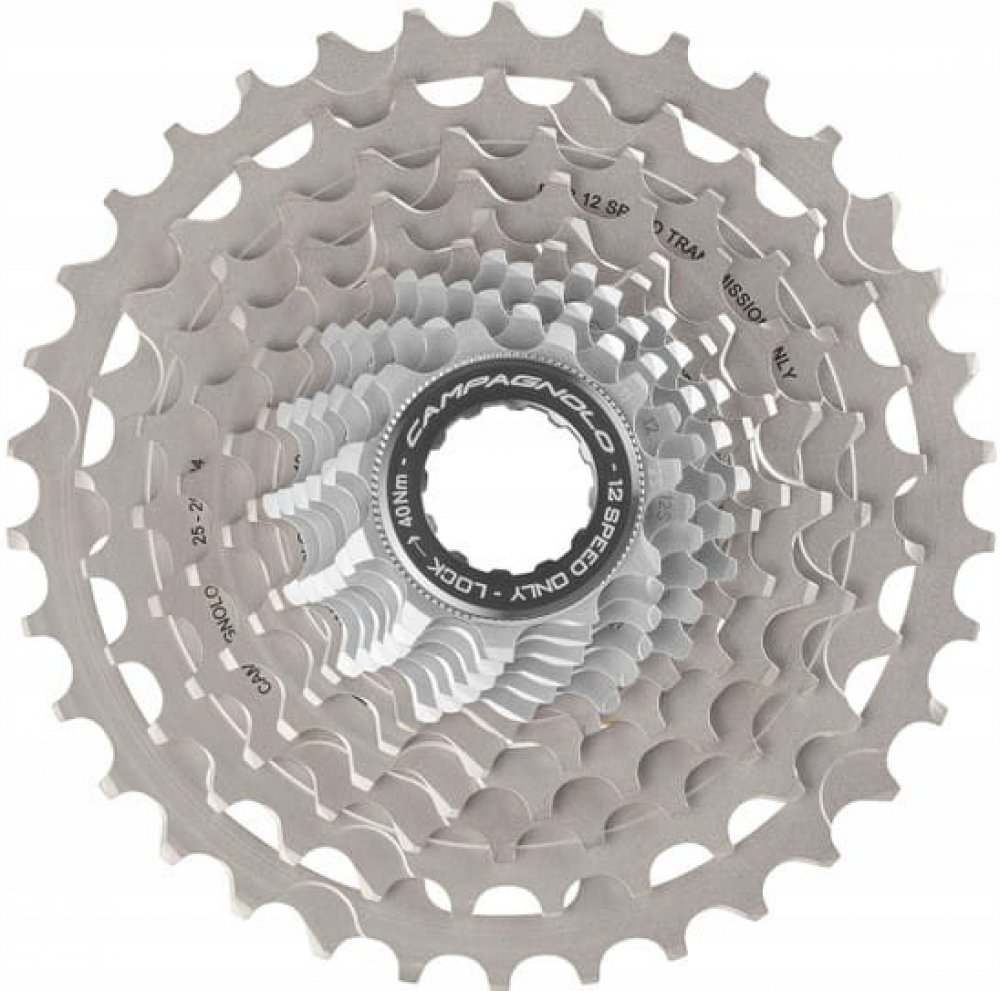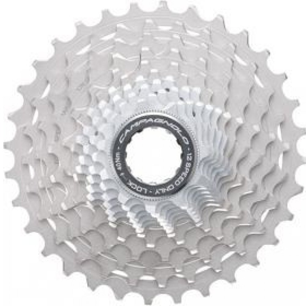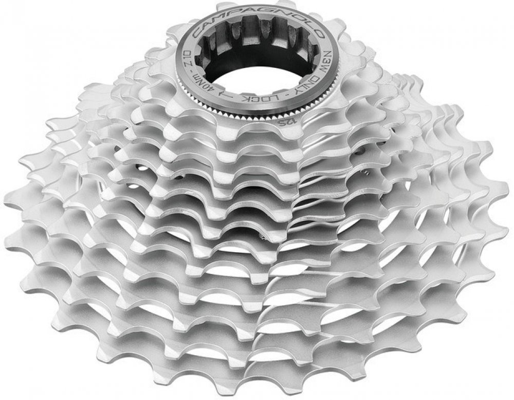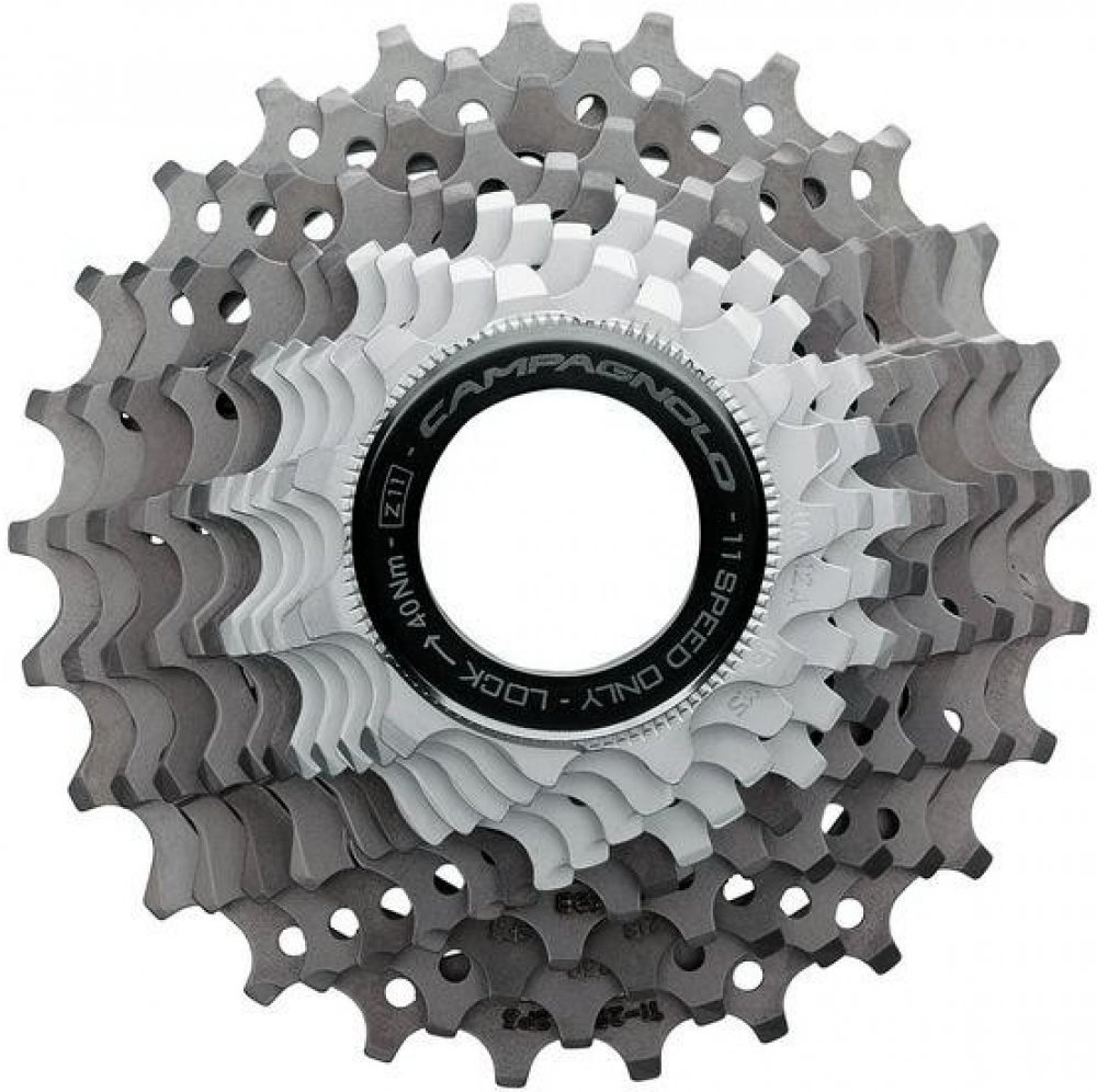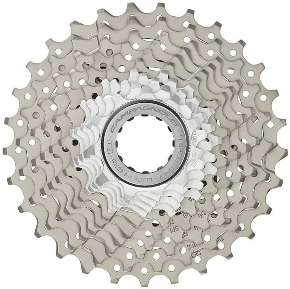 11-rychlostní kazeta. Můžete vybírat ze sedmi variant složení pastorků. 6 největších pastorků je vyrobeno z titanu a zbylých 5 menších ze speciální oceli s Nikl-Chrom povrchovou úpravou, která zajišťuje vysokou životnost a hladký chod při řazení. Vrchních 6 pastorků je uchyceno na dvou duralových unašečích s novým tvarem zvyšující tuhost. Ultra Drive - systém pro dokonalé řazení. 11-stupňové kazety CAMPAGNOLO Super Record jsou mezi jednotlivými 11 speed sadami navzájem kompatibilní.