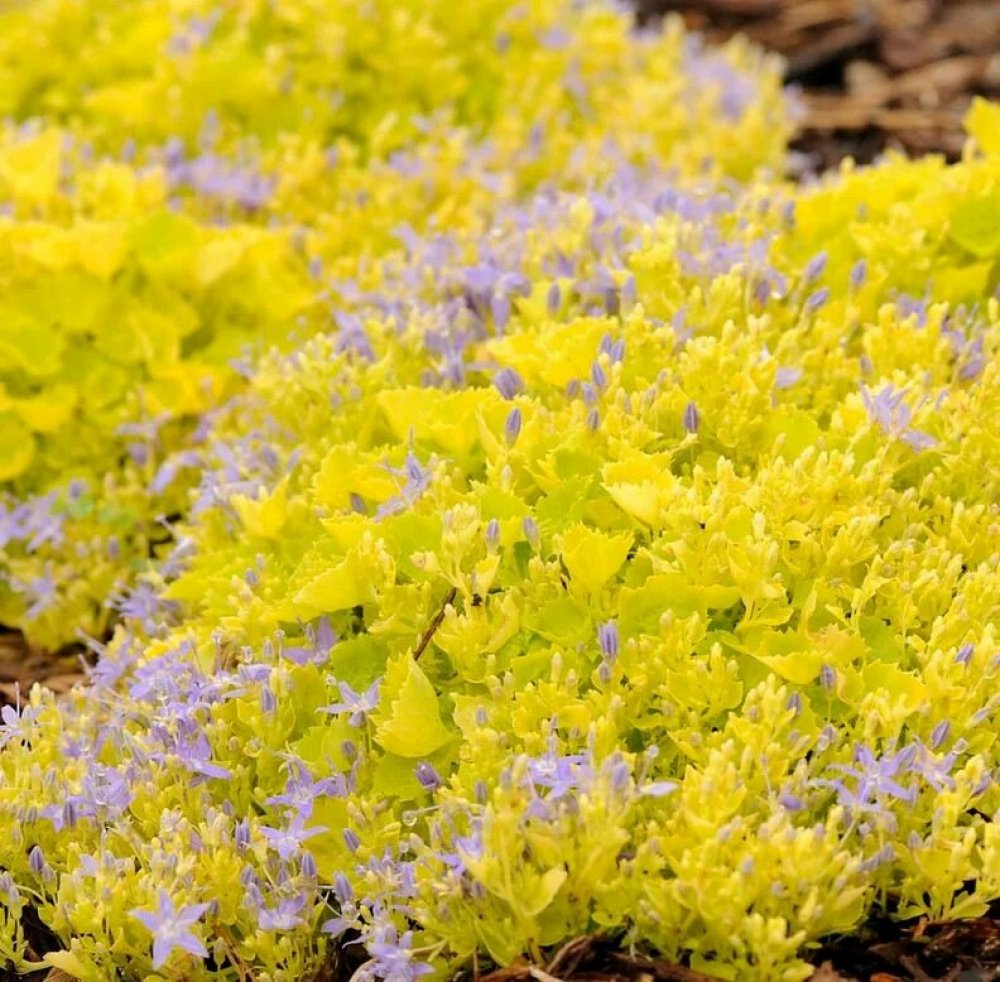Výborný kontrastní prvek – jeho zlatožlutý list prosvětlí tmavší partie záhonů. Skvěle vynikne s modrokvětými delfíniemi, levandulemi či šedolistými rostlinami (Stachys, Artemisia). Hodí se i pro moderní minimalistické výsadby díky jasné barvě listu.