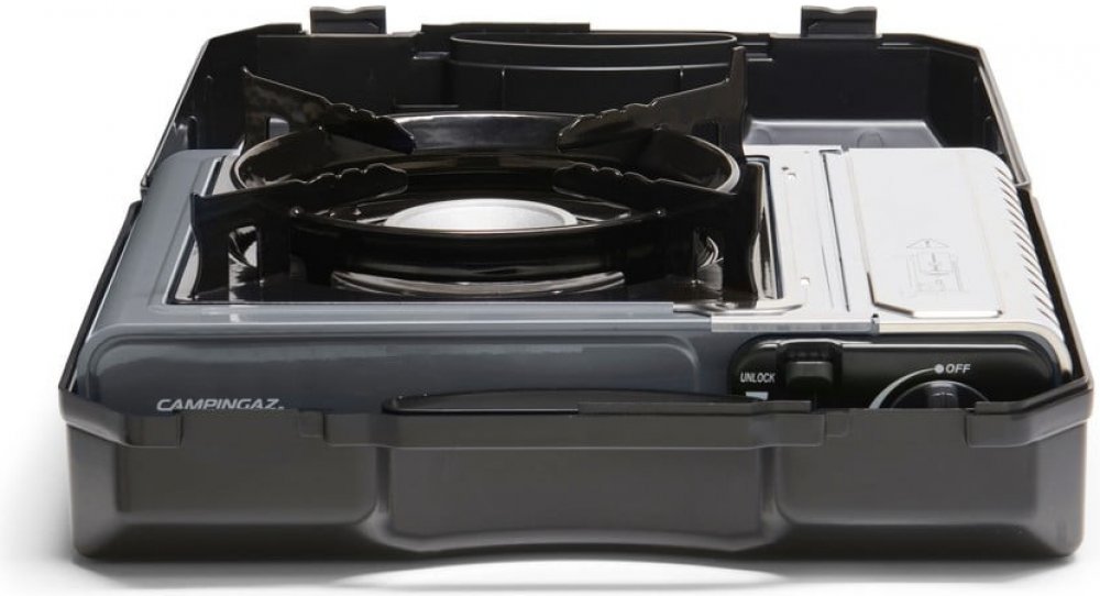 Vařič Campingaz usnadní přípravu pokrmů při venkovní rekreaci. Bezpečný montážní systém pro kartuši CP 250 Campingaz. Vestavěný elektrický piezo zapalovač s přesnou regulací výkonu hořáku. Čtyři držáky umístěné pod jedním hořákem. Konstrukce vařiče je postavena na široce rozmístěných nohách. Součástí je plastový kufr s madlem.