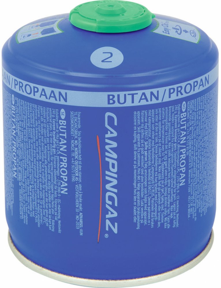 Ventilová kartuše s bezpečným, samotěsnícím ventilem. Velkou výhodou kartuší Campingaz je, že jsou k dostaní takřka na celém světě. CV 300 plus má oproti verzi CV 270 o 10 gramů plynu více, je vyšší, ale má menší průměr.