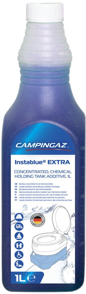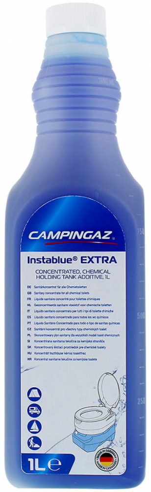 Campingaz Instablue Extra je vysoce účinný, ekologicky šetrný dezinfekční koncentrát určený pro použití v chemických WC, mobilních a přenosných záchodech. Tento přípravek je biologicky rozložitelný a neobsahuje formaldehyd, což z něj činí bezpečnou volbu pro uživatele i životní prostředí. Instablue Extra efektivně ničí bakterie a viry, zabraňuje tvorbě plynů a nepříjemného zápachu ve spodní nádrži chemické toalety. Je vhodný pro použití v karavanech, na chatách, v zahradních domcích, na stavbách i při cestování autem.