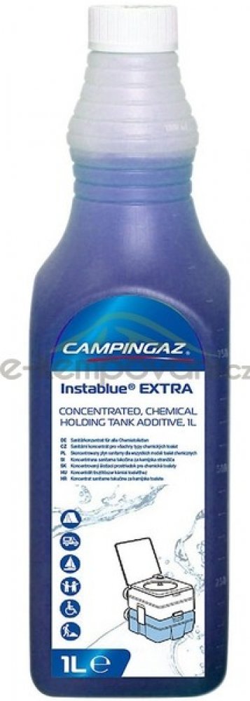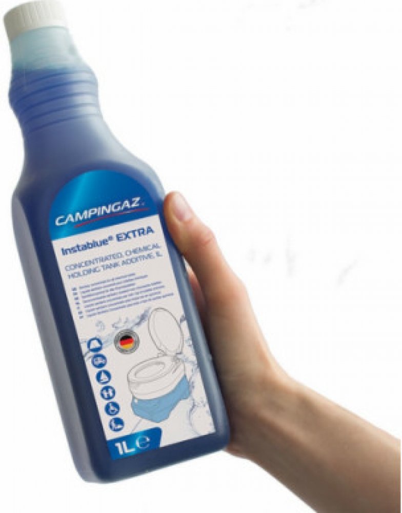 Díky praktickému dávkování – 1 plné víčko (10 ml) na každé 2 litry odpadu – je jeho použití velmi jednoduché a ekonomické. Koncentrát se ředí vodou přímo v odpadní nádrži. Campingaz Instablue Extra je vybaven bezpečnostní dětskou pojistkou, která zabraňuje nechtěnému otevření lahve. Pro příležitostné použití chemického WC se doporučuje vyprázdnit nádrž nejpozději po týdnu, i když není zcela plná.