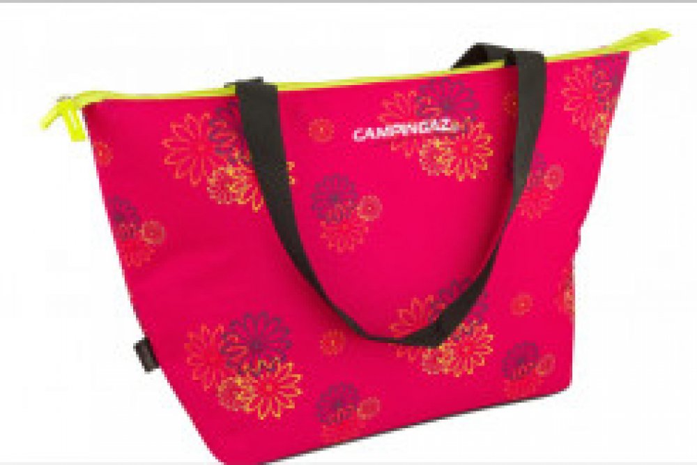 Dámská chladící taška. Pohodlné nošení – v ruce, přes rameno. Snadno se čistí, zavařené vnitřní švy (v případě poškození obalu uložených nápojů nebo potravin zabrání proniknutí do izolace). Skladná.