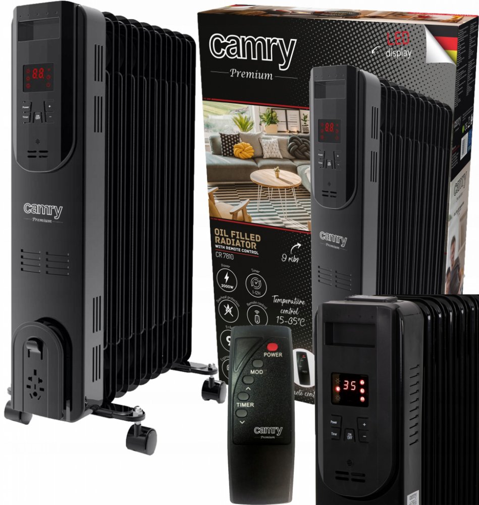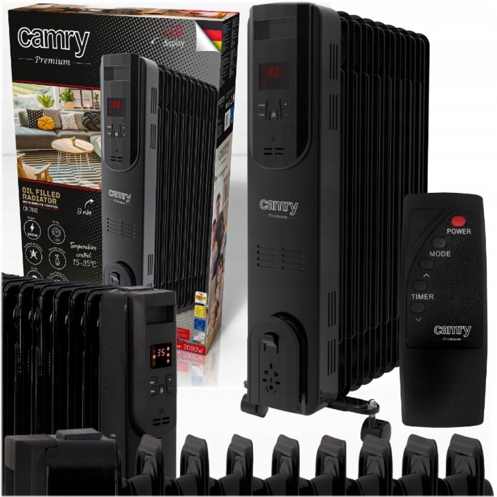 OLEJOVÝ RADIÁTOR ELEKTRICKÝ 2000W 9 ŽEBER DÁLKOVÉ OVLÁDÁNÍ⭐ Camry CR 7810⭐