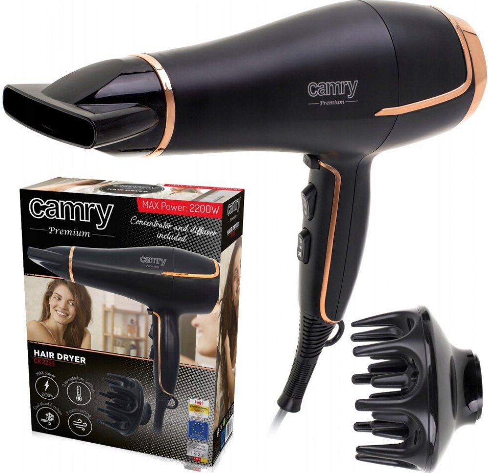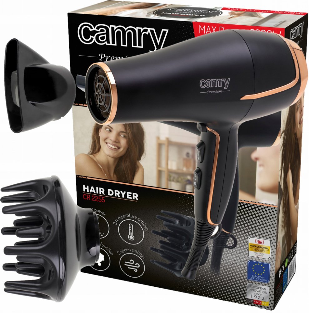 Fén Camry CR 2255 • 1800 W • černá • regulace rychlosti • počet stupňů regulace rychlosti 2 • regulace teploty