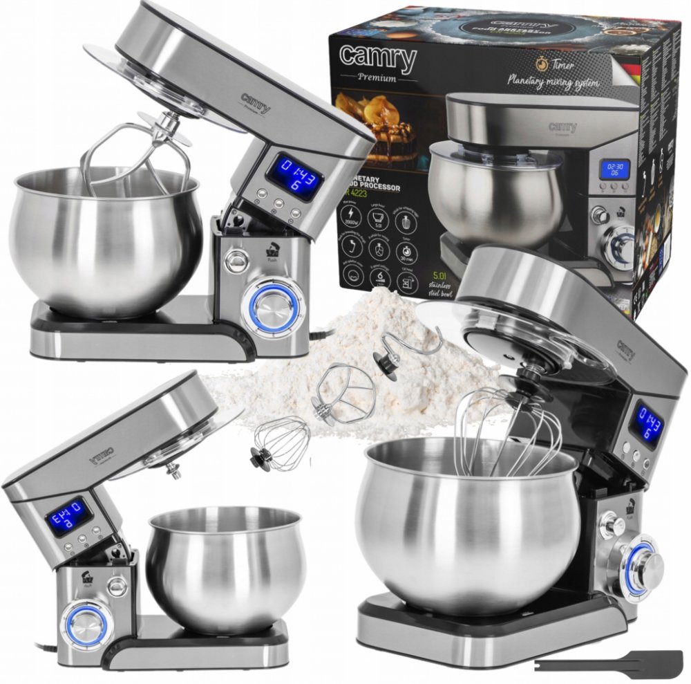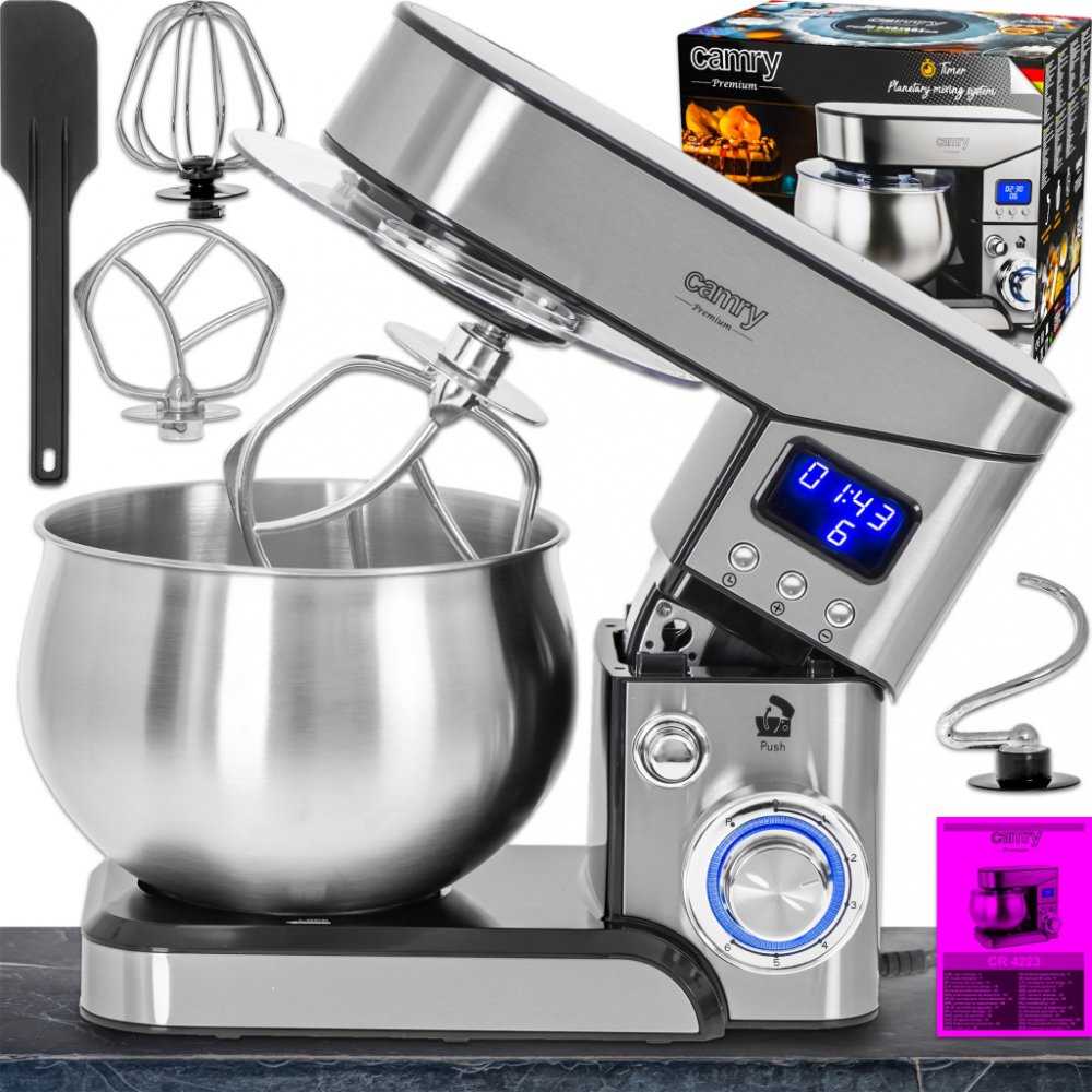 Camry CR 4223 Pokud hledáte kuchyňské vybavení, které vám pomůže připravit pokrmy podobné těm, které dávají profesionální kuchaři, už nemusíte stále hledatć! Planetární robot Camry 4223 LCD s výkonem 2000 W je zařízení, které navždy změní váš styl vaření. Multifunkční, stylový a vyrobený z vysoce kvalitních materiálů bude důležitým doplňkem vybavení vaší kuchyně. Můžete si připravit své oblíbené dorty, omáčky a krémy, ale i mnoho dalších doplňků. Zařízení má velké poslání. 5,0L vyrobený z nerezové oceli a vybavený 6 rychlostmi míchání.Barva: Stříbrná; Hrníčkový mixér: Ne; Pulsace: Ano; Míchání: Ano; Hnětení těsta: Ano; Regulace rychlosti: 6-rychlostní; Výkon: 2000 W; Broušení: Ano; Pěna na šlehání: Ano; Kapacita pracovní nádoby: 5 l Typ: Planetární procesor Vaření: Ne; Krájení: Ne; Výrobník těstovin: Ne; Mletí masa: Ne; Odšťavňovač: Ne; Strouhání brambor: Ne; Odšťavňování citrusů: Ne; Vestavěná váha : Ne;Kapacita konvového mixéru: Nelze použít
