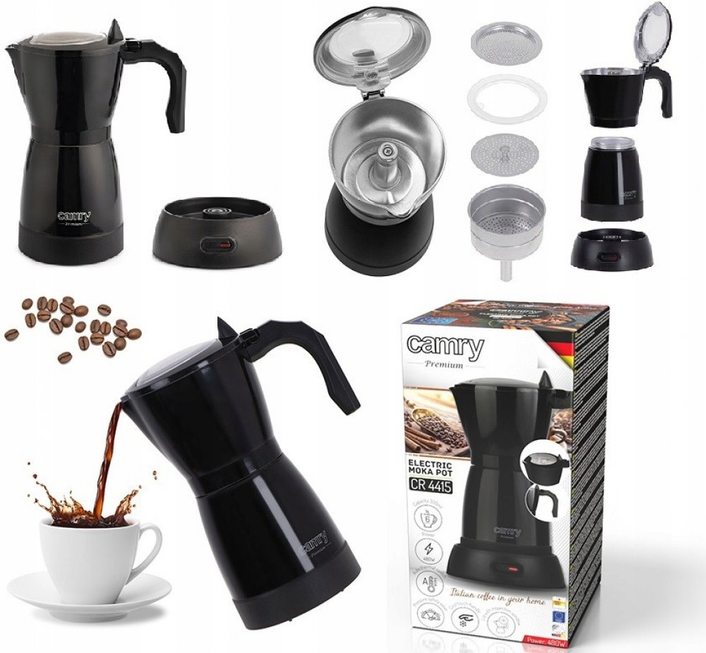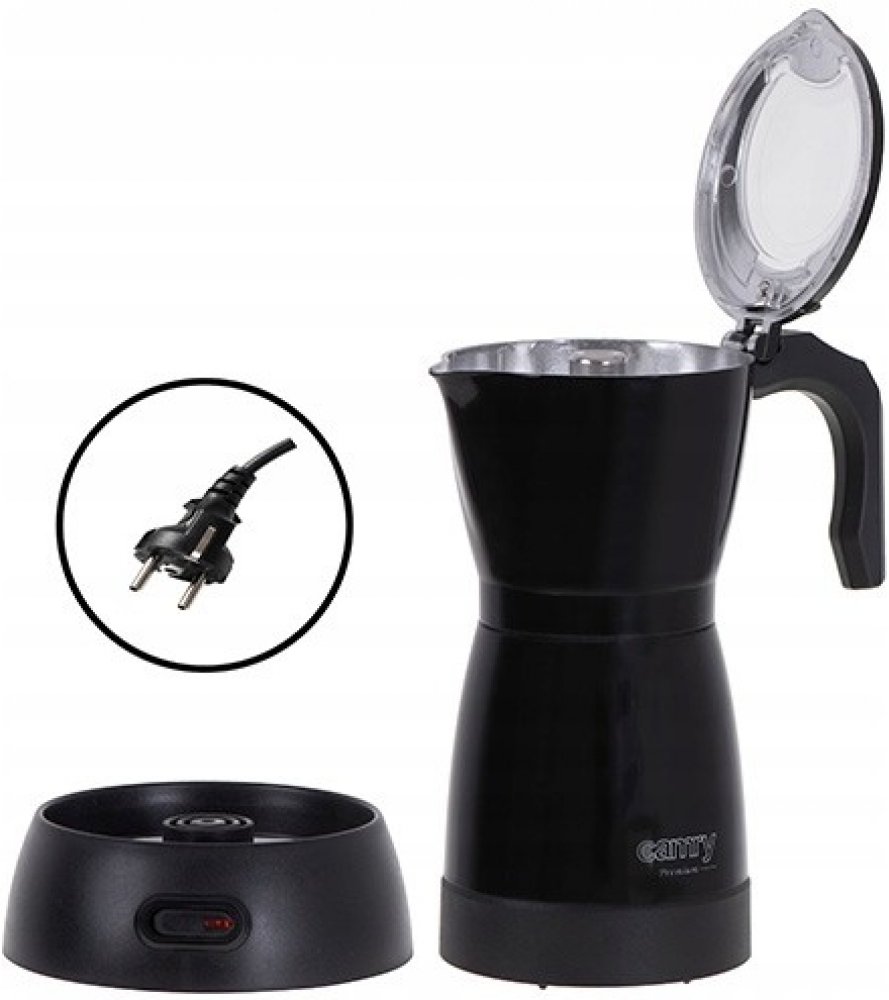 Kávovar Camry CR 4415 je ideálním doplňkem do kuchyně každého milovníka kávy. Díky velké kapacitě 300 ml umožňuje připravit až 6 šálků espressa. Kompaktní provedení je ideální na cesty. Během procesu vaření se uvnitř kávovaru CR 4415 vytváří vysoký tlak, který umožňuje připravit kávu s plnou chutí. Na tělo kávovaru je použit hliník - materiál, který se při používání skvěle osvědčuje. Každý znalec kávy ví, že k výrobě aromatického nápoje je zapotřebí vysoký tlak. A nic nechutná lépe, než když si kávu připravíte sami. Největší výhodou kávovaru je, že je elektrický. Nevyžaduje tedy vařič a můžete jej používat kdekoli, kde najdete zásuvku. Otočná základna o 360° dobře poslouží pravákům i levákům, nezahřívající se rukojeť vám umožní téměř okamžitě nalít hotový nápoj do sklenice. Přetlakový ventil Power: 480W