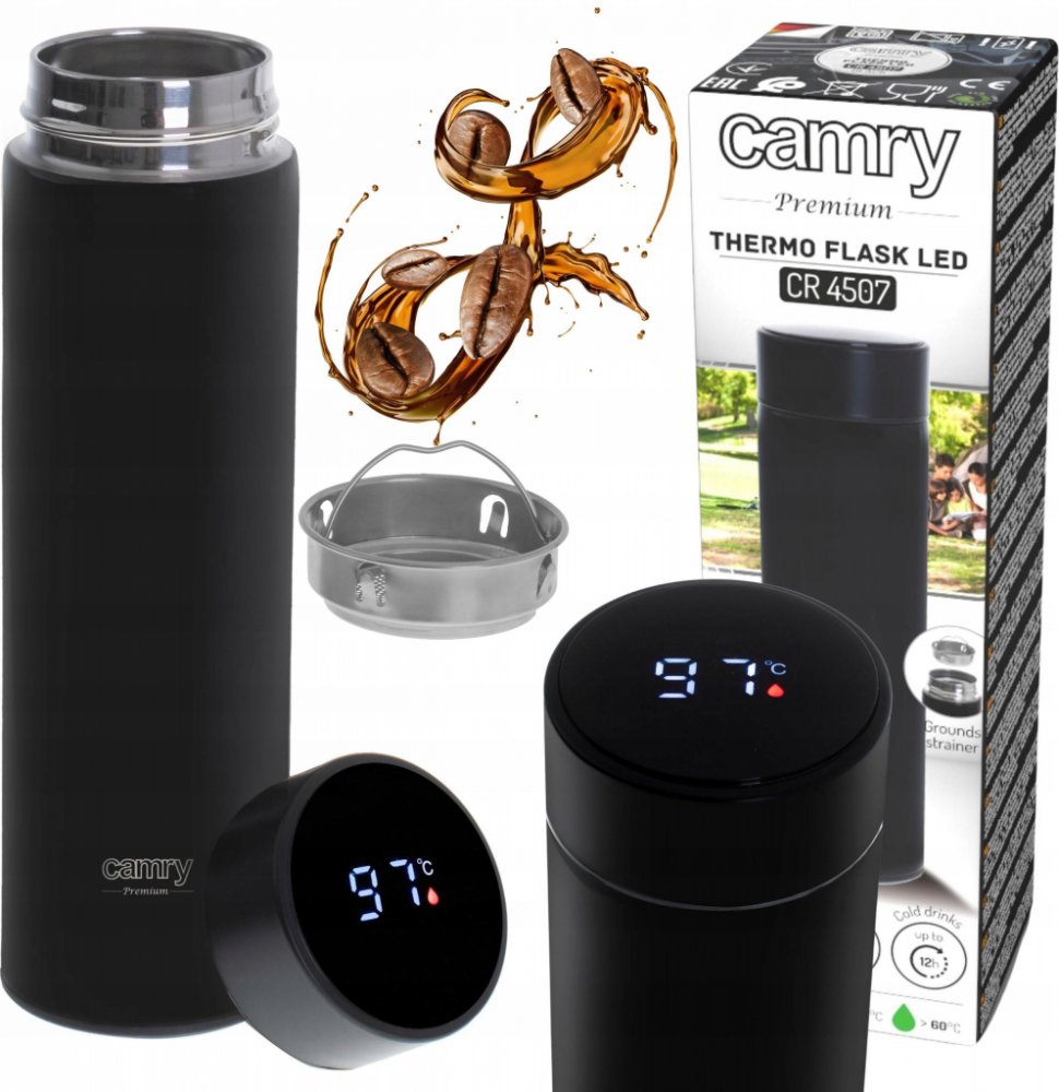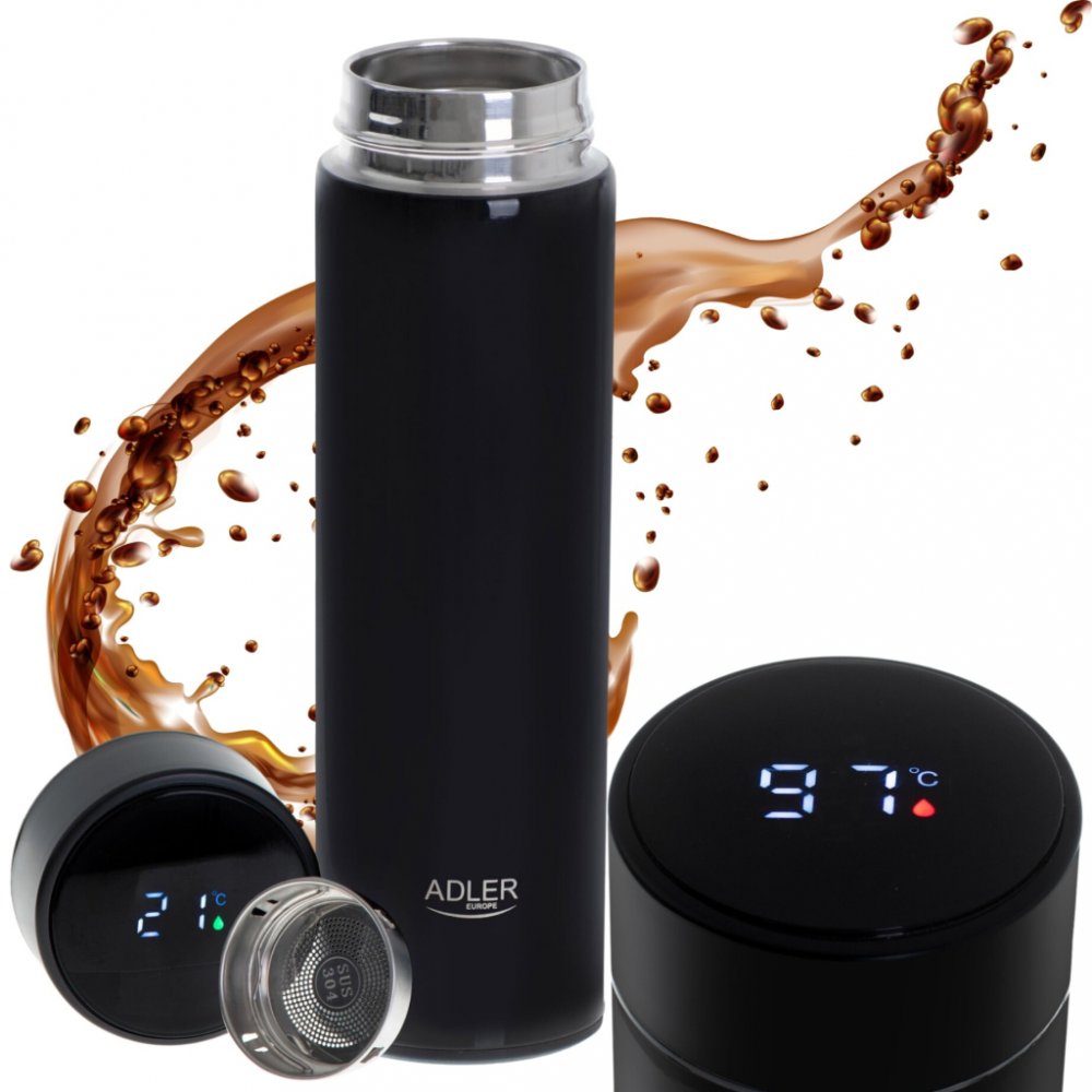 Termoska AD 4506 s LED dotykovým displejem, indikujícím aktuální teplotu nápoje, je skvělým řešením pro milovníky horkých nápojů. Díky tomu můžete snadno sledovat teplotu vašeho oblíbeného nápoje v reálném čase. LED displej umožňuje přesné odečítání teploty, což vám umožní vyhnout se popálení nebo pití příliš studených nápojů. Díky dotykovému displeji je navíc ovládání termosky snadné a intuitivní. Zařízení má přesný tepelný senzor – odečet tempa. po otočení dnem vzhůru na 3 sekundy. Vakuová izolace a dvojité stěny udržují teplotu pro horké nápoje 8 hodin nebo studené až 12 hodin. Součástí balení je separační sítko fusy. Vestavěná baterie LED displeje má velmi dlouhou životnost až 30.000 dotyků. Objem termosky je 473ml. Hlavním charakteristickým znakem této termosky je vestavěný LED displej. Díky němu můžete snadno zkontrolovat aktuální teplotu obsahu termosky, aniž byste ji museli otevírat. LED displej je čitelný a jasný, umístěný na vnějším povrchu termosky, díky čemuž je čtení teploty mimořádně pohodlné. Tato moderní termoska je nejen praktickým zařízením, ale také stylovým doplňkem pro ty, kteří ocení pohodlí a moderní řešení.