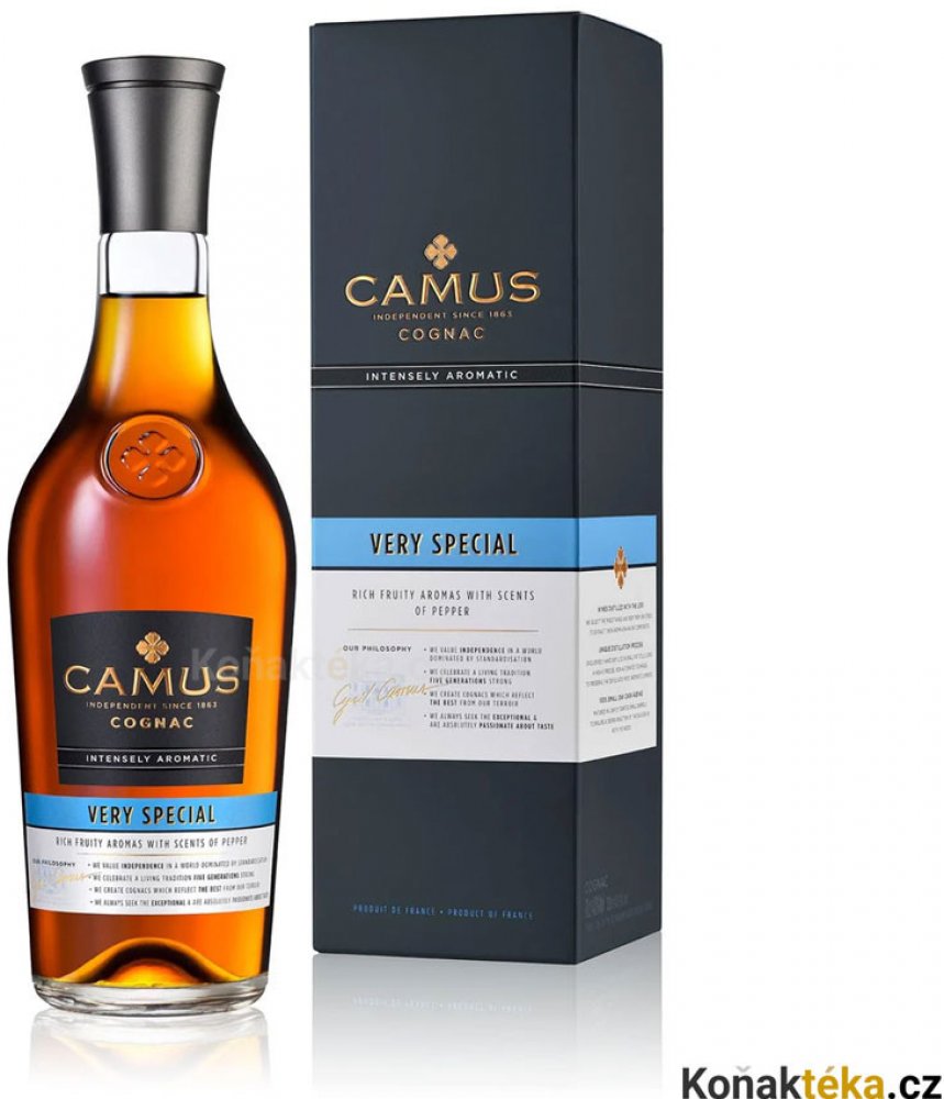 Camus VS Intense Aromatic nabízí bohaté a ovocné aroma, je oceněný koňak. Při velmi vysoké koncentraci esterů převládají při ochutnání intenzivní chutě letního ovoce a jemného koření. Tento pečlivě namíchaný koňak VS je charakteristický pro terroir Charente, ve kterém se vyrábí. Koňak je výsledkem speciálních destilačních metod, jejichž cílem je zvýraznit přirozené aroma eaux-de-vie.