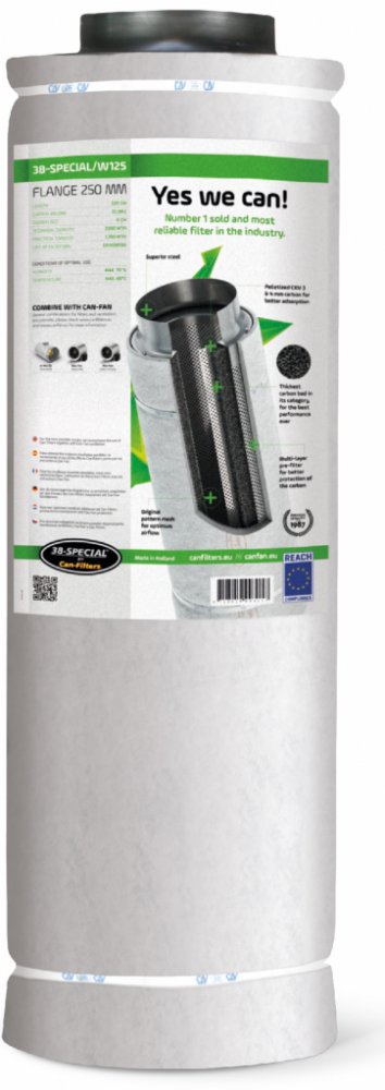 Uhlíkový filtr CAN 38" Special 1750 m3/h o délce 125 cm je kvalitní filtr americké značky. Je vyroben ze solidní oceli a naplněn prvotřídním aktivním uhlím (CKV-4) ve vrstvě dvou palců. Profesionální provedení Filtru Can 38" Special zaručuje rovnoměrné nasávání celým povrchem filtru a dlouhou životnost - 18 - 24 měsíců.