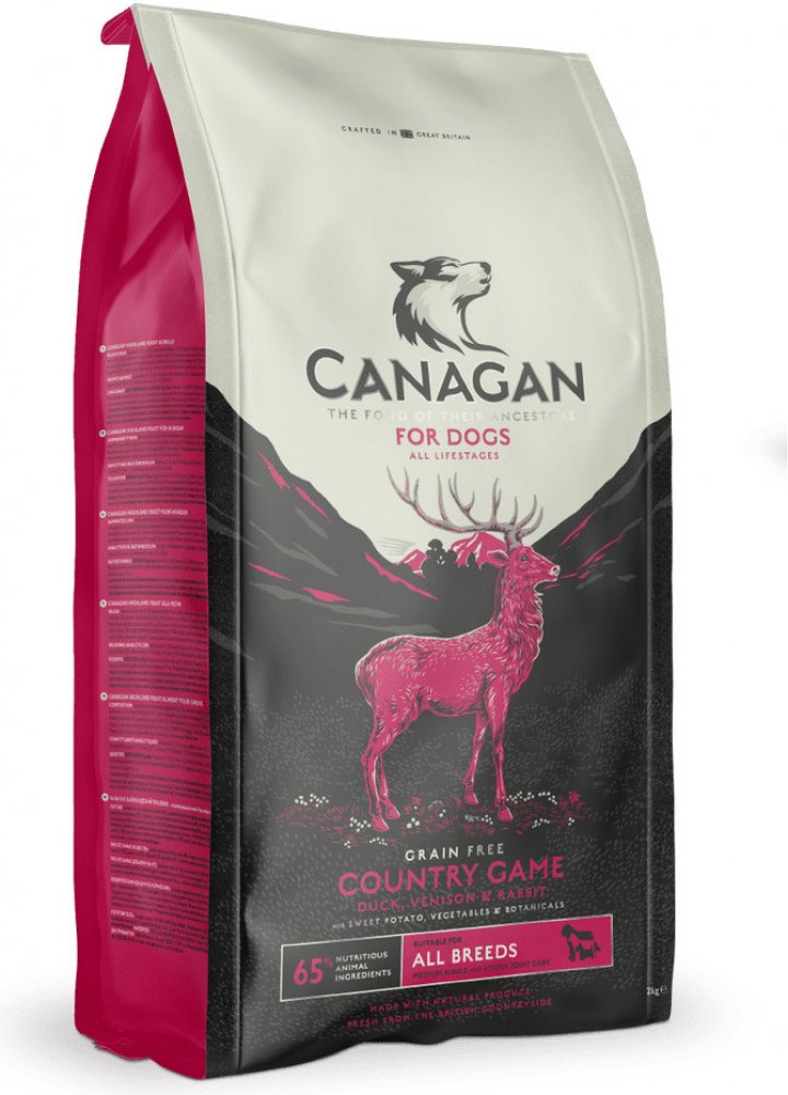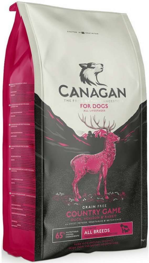 Psi jsou masožravci, a proto velkou část svých nutričních potřeb pokrývají živočišnými zdroji. Menší místo v jejich jídelníčku zaujímá ovoce a zelenina. Canagan se přesně drží tohoto poměru, a je tak pro psy mnohem lépe nutričně využitelný.