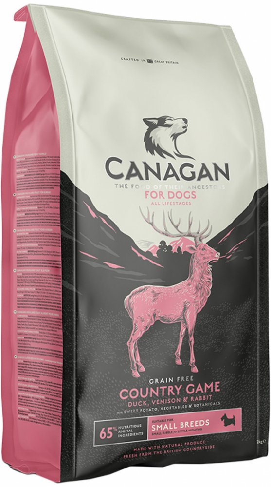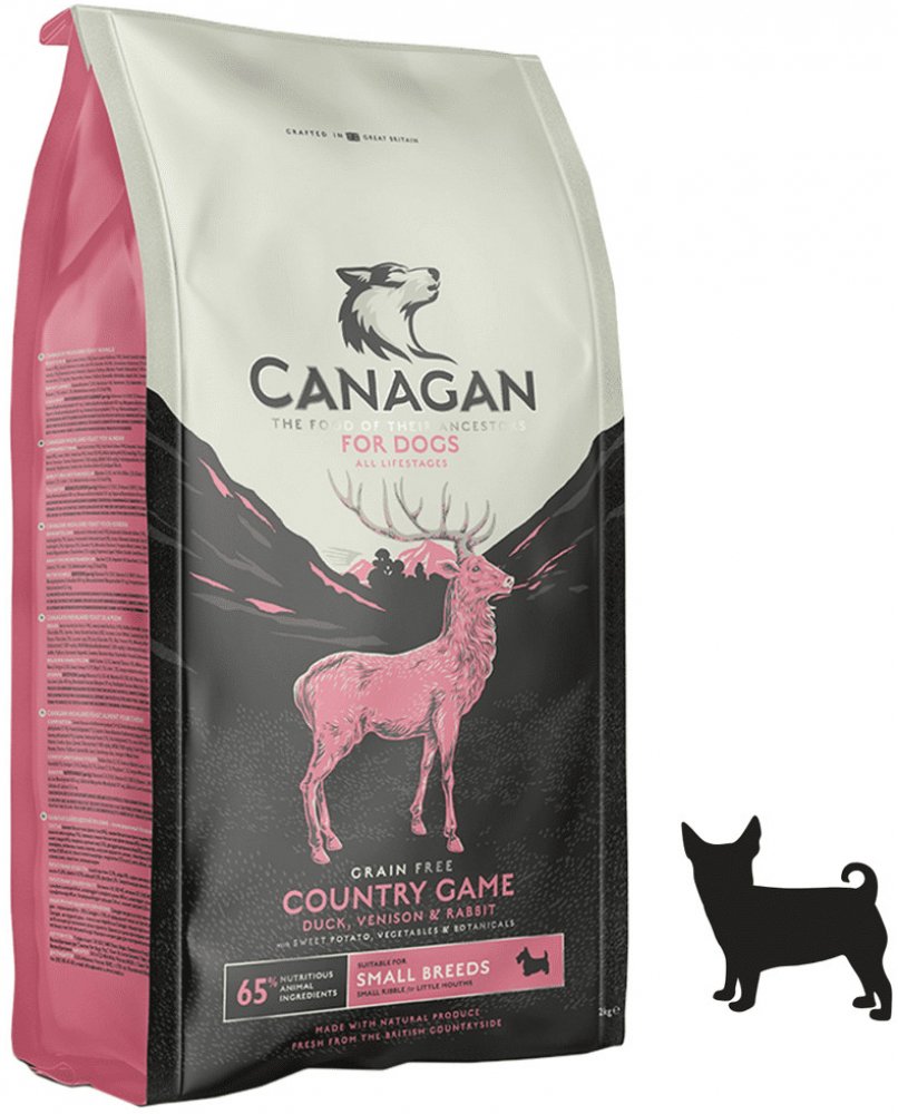 Kompletní krmivo pro psy malých plemen Canagan Small Breed Country Game (zvěřina) je složením stejná receptura jako Country Game pro psy - ovšem s menšími granulemi.