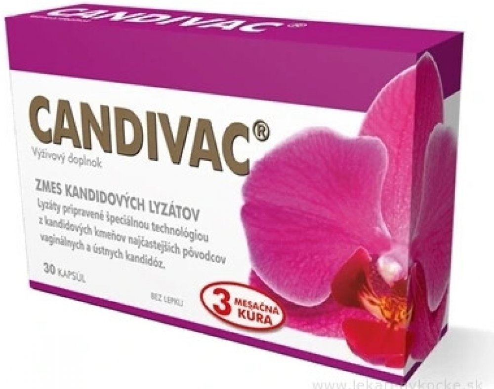 CANDIVAC je doplněk stravy ve formě kapslí. Originální patentovaný produkt vyráběný nejmodernějšími biotechnologickými a purifikačními technologiemi. Obsahuje unikátní kombinaci purifikovaných kandidových lyzátů (vysoce přečištěné neškodné části inaktivovaných mikroorganismů). Připraven z kandidových kmenů nejčastějších původců vaginálních a ústních kandidóz. Vyvinuto ve spolupráci s Lékařskou fak...