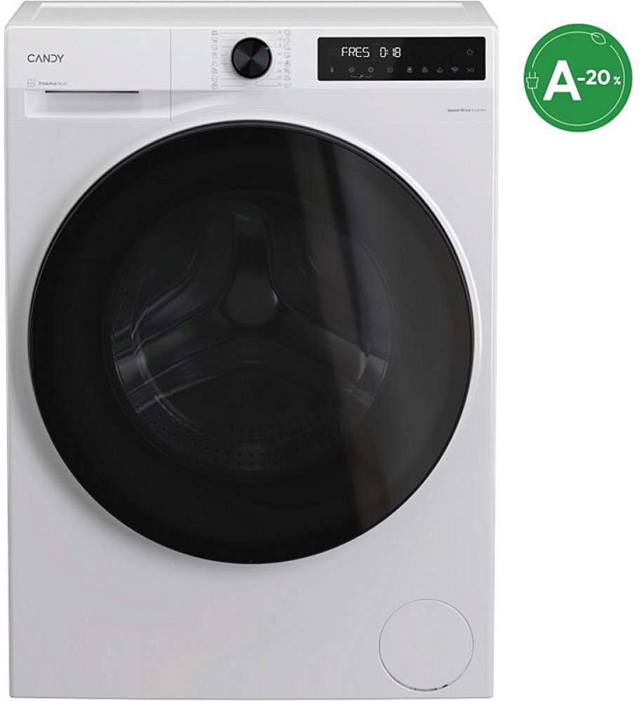 Candy BP 49BL8-S – Předem plněná pračka Candy s invertorovým motorem, možností ovládání přes aplikaci a 16 programy. Energetická třída A, náplň 9 kg prádla a odložený start.
