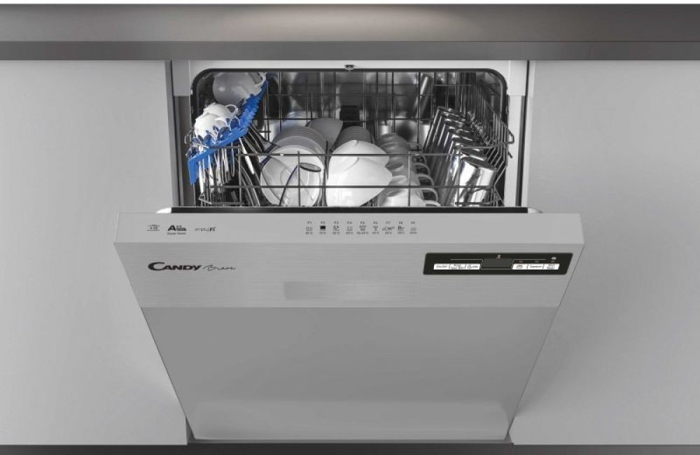 Vestavná smart myčka nádobí Candy CDSN 2D350PX v moderním provedení se spotřebou vody při standardním cyklu pouze 12 l a elektrické energie 1,01 kWh. Myčka patří do energetické třídy A ++ a disponuje možností připojení k Wifi a ovládání myčky přes aplikaci Simply Fi. Čas ušetříte díky praktické funkci odloženého startu. Už více nemusíte čekat na to, až bude nádobí umyté. Stačí, když si nastavíte začátek mytí tak, aby po vašem příchodu domů bylo umyté. Hlučnost při mycím cyklu je 46 dB. Kapacita myčky je 13 jídelních souprav.