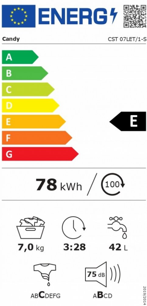 Pračka Cst 07LET/1-S Třída energetické účinnosti E Horní plnění