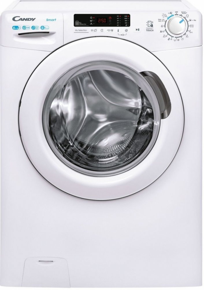 Předem plněná automatická pračka se sušičkou Candy CSWS4 3642DE/2-S, náplň 6+4 kg, maximální otáčky 1300 ot. , energetická třída F/D, AC motor, hlučnost 78 dB(A), Steam, SLIM, NFC připojení - ovládání přes aplikaci. 2D displej v češtině. SUŠIČKA - Snížená teplota sušení – ochrana vláken a barev, prodloužení jejich životnosti. 16 programů základních + 40 programů Smart Touch, množstevní automatik...