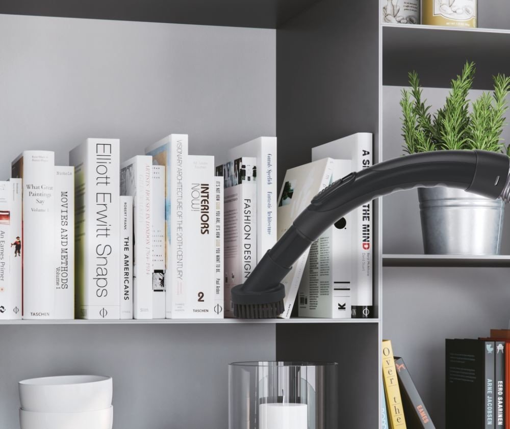 - Prachový a nábytkový kartáč a štěrbinová hubice jsou díky praktickému držáku přehledně uloženy na trubici