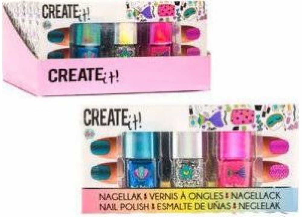 Sada dětských laků na nehty. V balení naleznete 3ks různobarevných laků (jeden třpytivý). Uzávěry lahviček jsou s metalickým efektem. Určeno pro děti od 6-ti let věku. Objem lahvičky 8ml. Pro odstanění laku použijte běžný odlakovač na nehty. Složení viz. fotogalerie produktu.