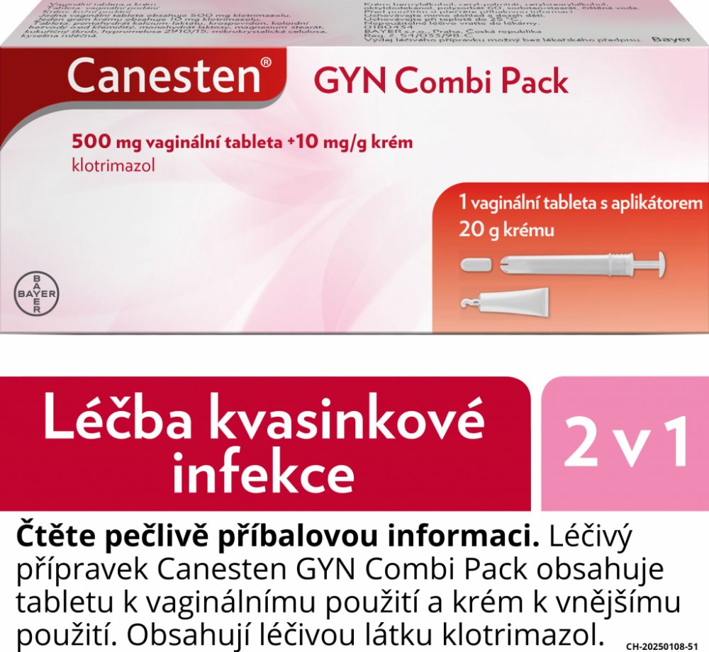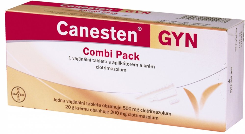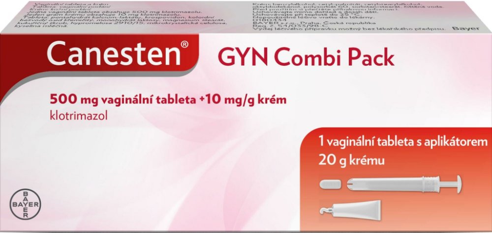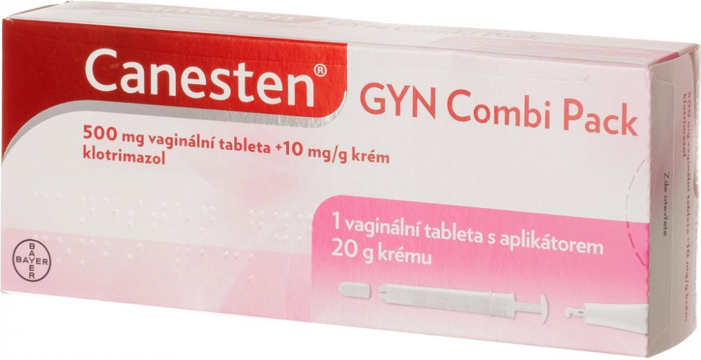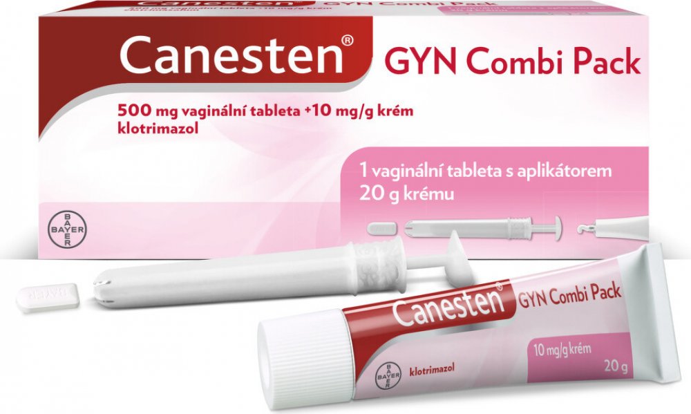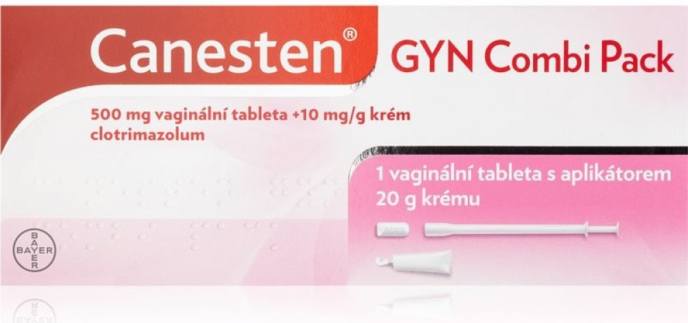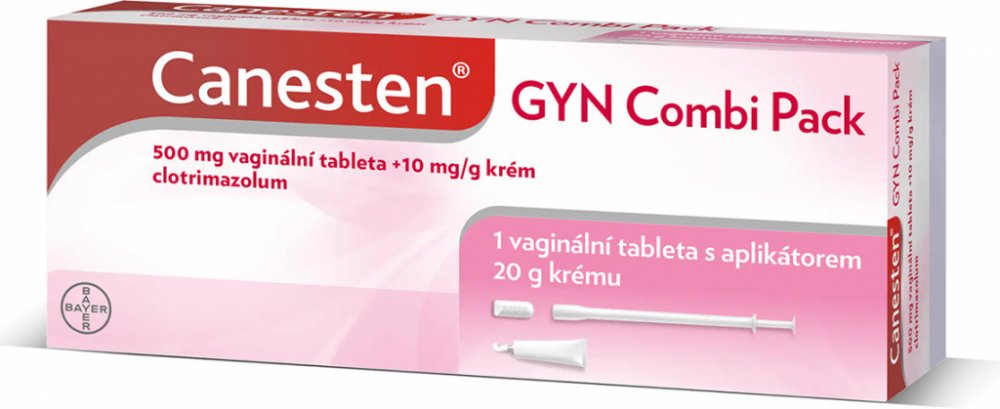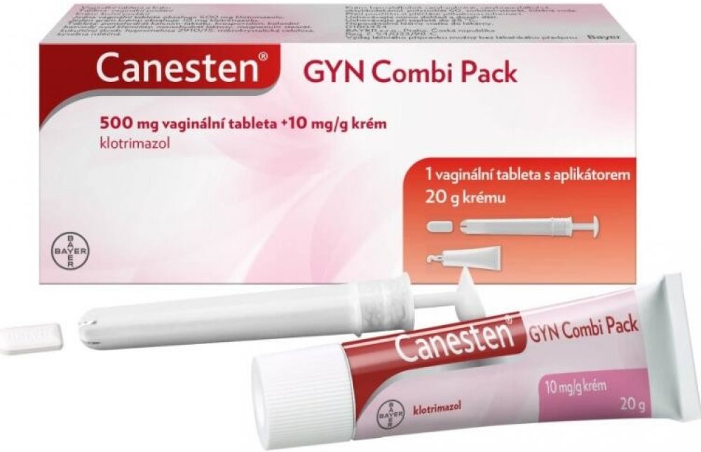 Canesten GYN Combi Pack je kombinované balení, které obsahuje 1 vaginální tabletu s aplikátorem k zavedení do pochvy a 20 g krému ke kožnímu podání.