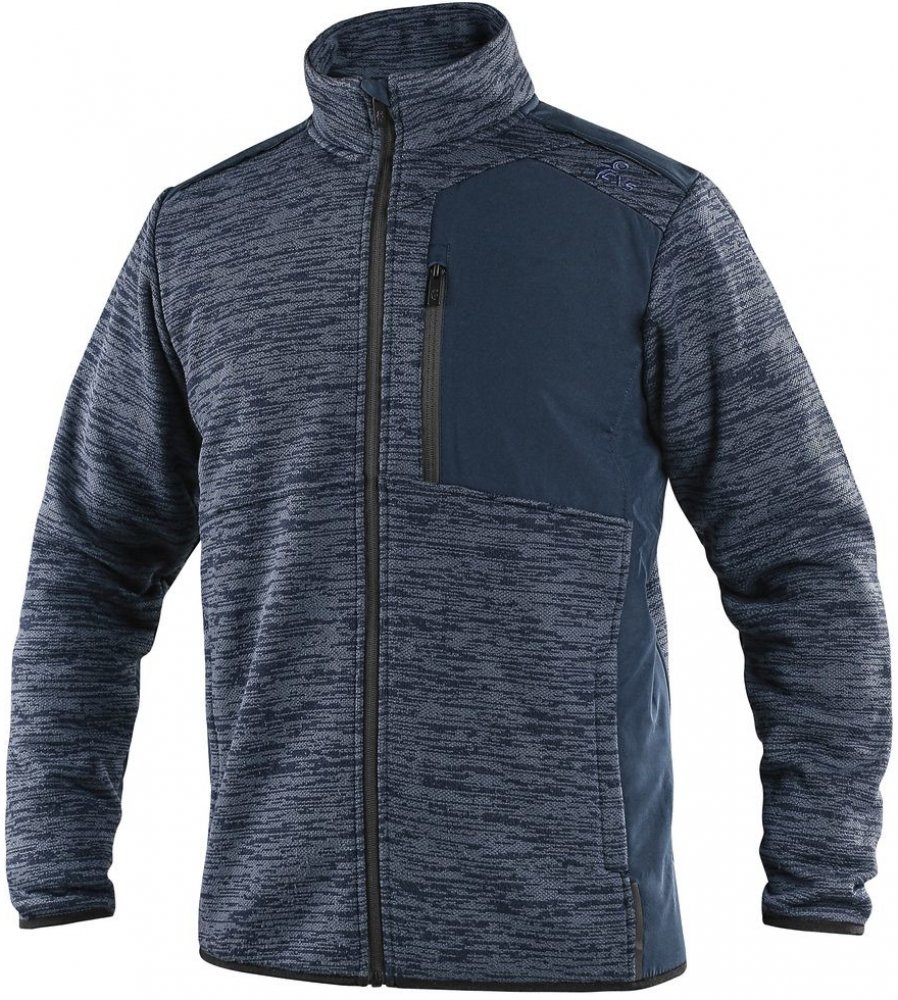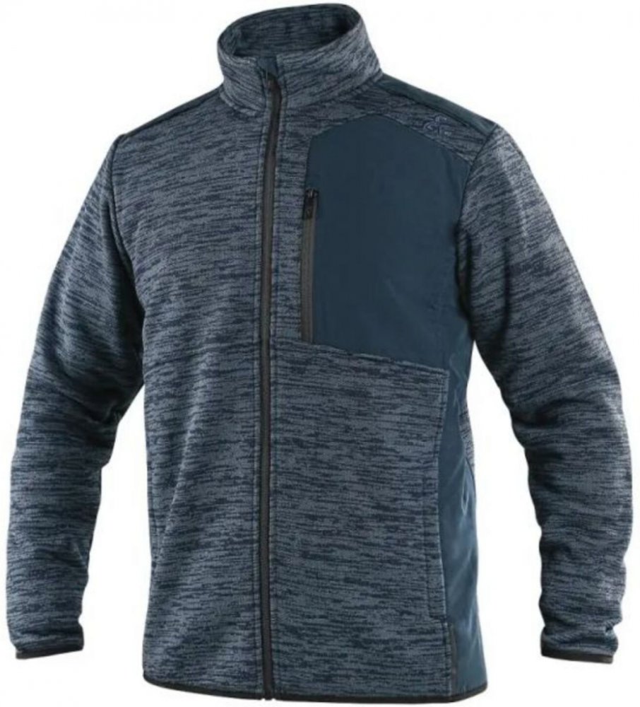 Pánská bunda/mikina CANIS CXS 4ENVI HAMPTON tmavě modrá na zip vyrobena z kombinace recyklovaných materiálů, které dávají nový život plastovým lahvím. Pro výrobu jednoho kusu mikiny bylo využito 80 kusů PET lahví. Je vhodná do práce i na volnočasové aktivity. Mikina je vybavena náprsní kapsou na zip, bočními kapsami na zip, jemnou elastickou gumičkou v zápěstí a spodním lemu