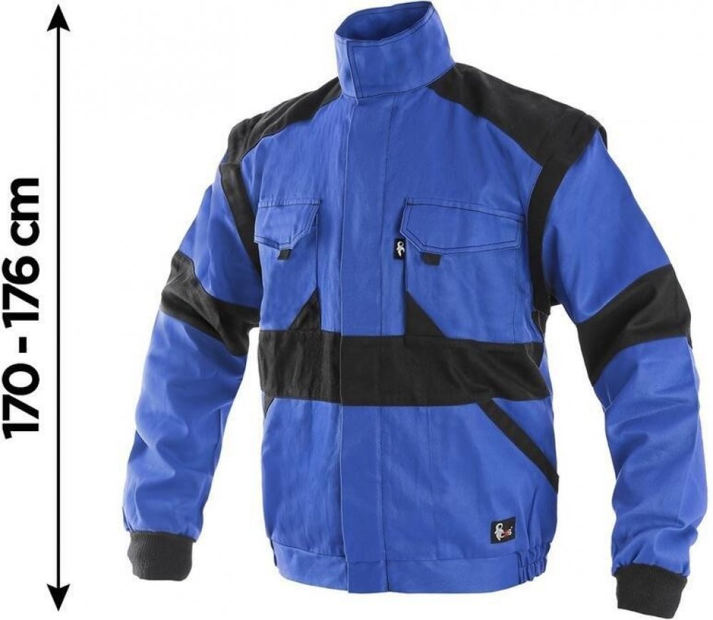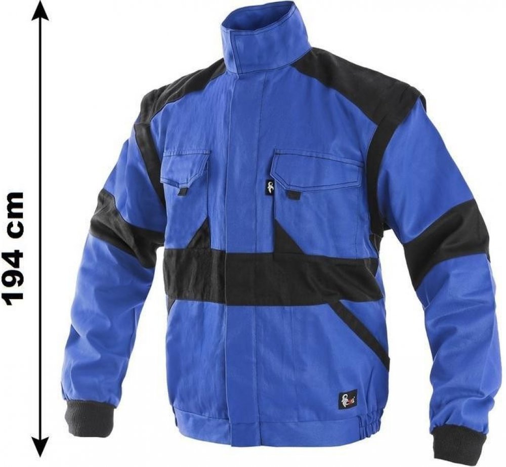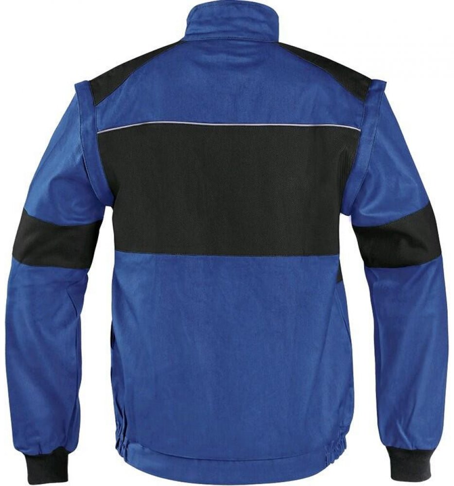 Pánská blůza, odepínací rukávy do manžety, kryté zapínání, kapsa na mobil, pas do gumy. Prodloužena na výšku 194 cm. Materiál: kepr 100% bavlna 260g/m2. Norma EN ISO 13688. Typy barevného provedení: modro-černá. Vel.50,54,58,62
