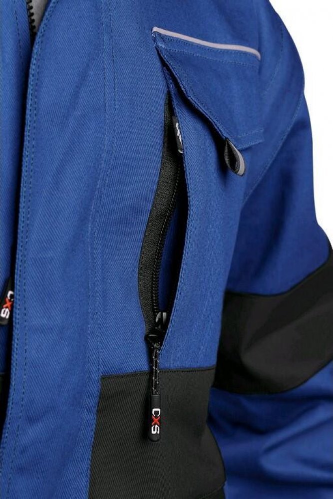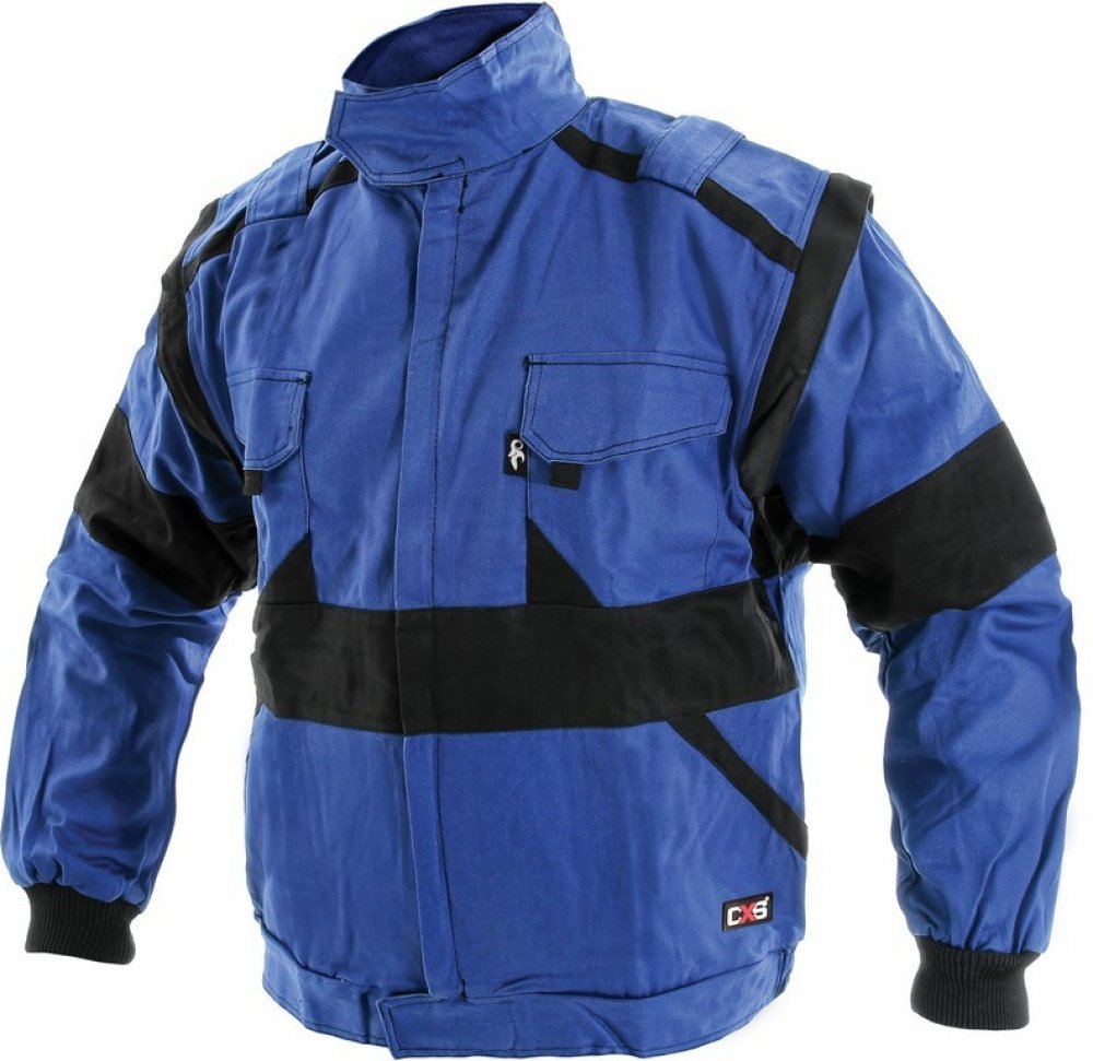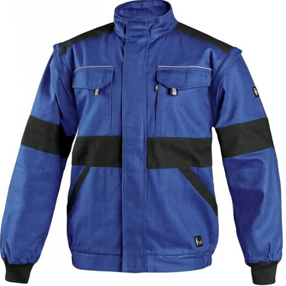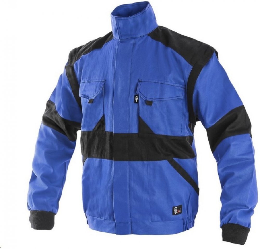 Pánská blůza, odepínací rukávy do manžety, kryté zapínání, kapsa na mobil, pas do gumy. Prodloužena na výšku 194 cm. Materiál: kepr 100% bavlna 260g/m2. Norma EN ISO 13688. Typy barevného provedení: modro-černá. Vel.50,54,58,62