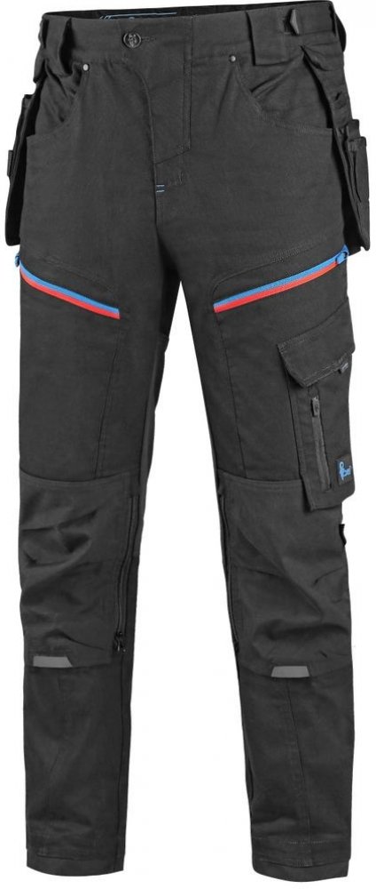 Canis CXS kalhoty LEONIS pánské černé s modro/červenými doplňky