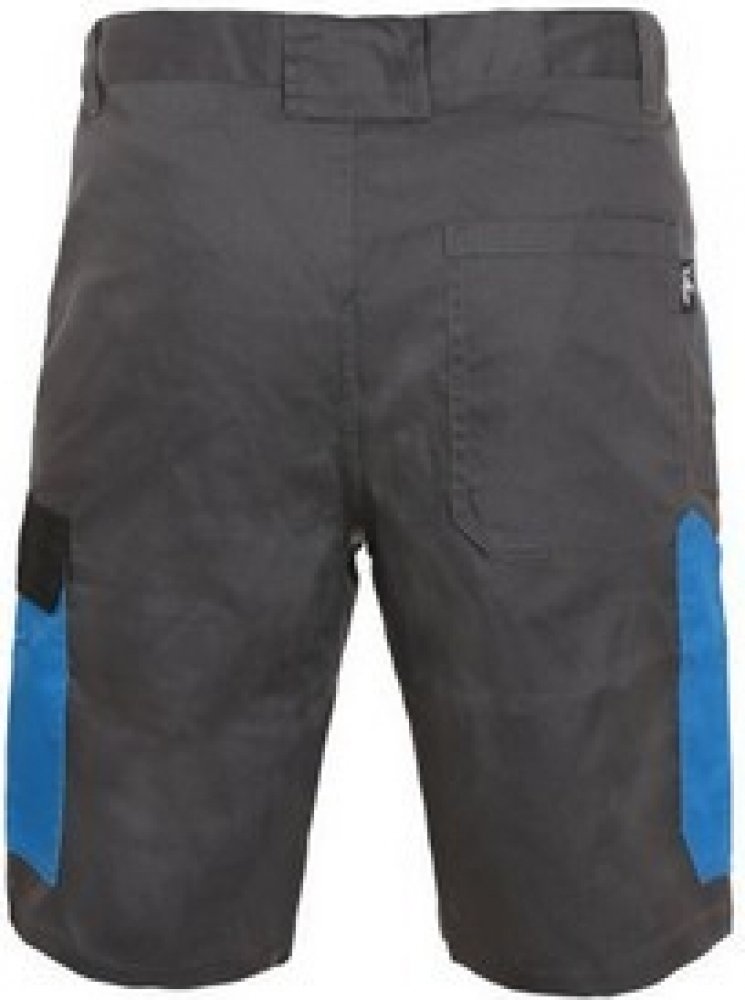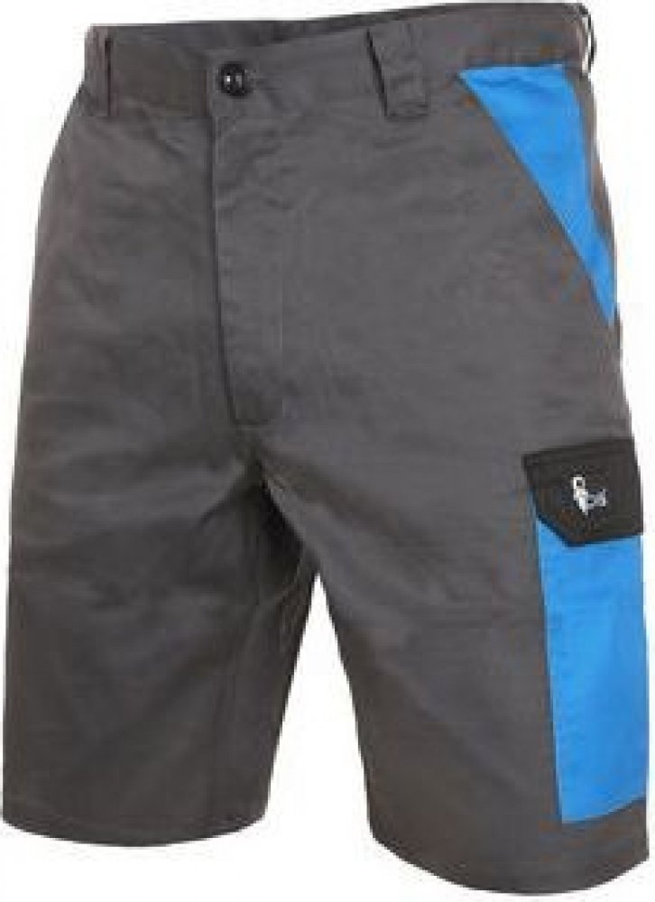 Pánské montérkové kraťasy, pas s poutky na opasek, přední klínové kapsy, boční kapsa s klopou, kapsa na skládací/svinovací metr, zadní jednoduchá kapsa na pravé straně. Doporučené použití: letní pracovní oděv, stavebnictví, strojírenství,lehký průmysl, automobilový průmysl, logistika, skladová manipulace, spedice, autoservisy, údržba, montáže, zemědělství, učiliště, čerpací stanice, zahrada, hobby. Materiál: 65 % polyester 35 % bavlna, 190g/m2. Splňuje EN ISO 13688. Typy barev: šedo-modrá, šedo-červená, šedo-žlutá, šedo-černá. Velikost: 46-64. Barva šedo-modrá a šedo-černá ve velikosti 66 a 68.